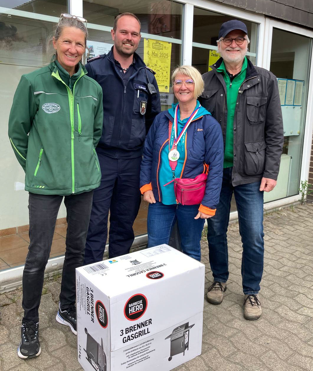 Mehr als sehr zufrieden war auch Veronica Mazejewski. Sie konnte von der Vorsitzenden des Verkehrsvereins, Gabriele Forstner, dem Ortsbrandmeister von Wendthagen-Ehlen, David Busche, und dem Vorsitzenden des TSV Eintracht-Bückeberge, Rainer Neumann-Buchmeier, den ersten Preis der durchgeführten Tombola in Empfang nehmen: Einen Drei-Brenner-Gasgrill gestiftet von der Firma Hagebau in Stadthagen.