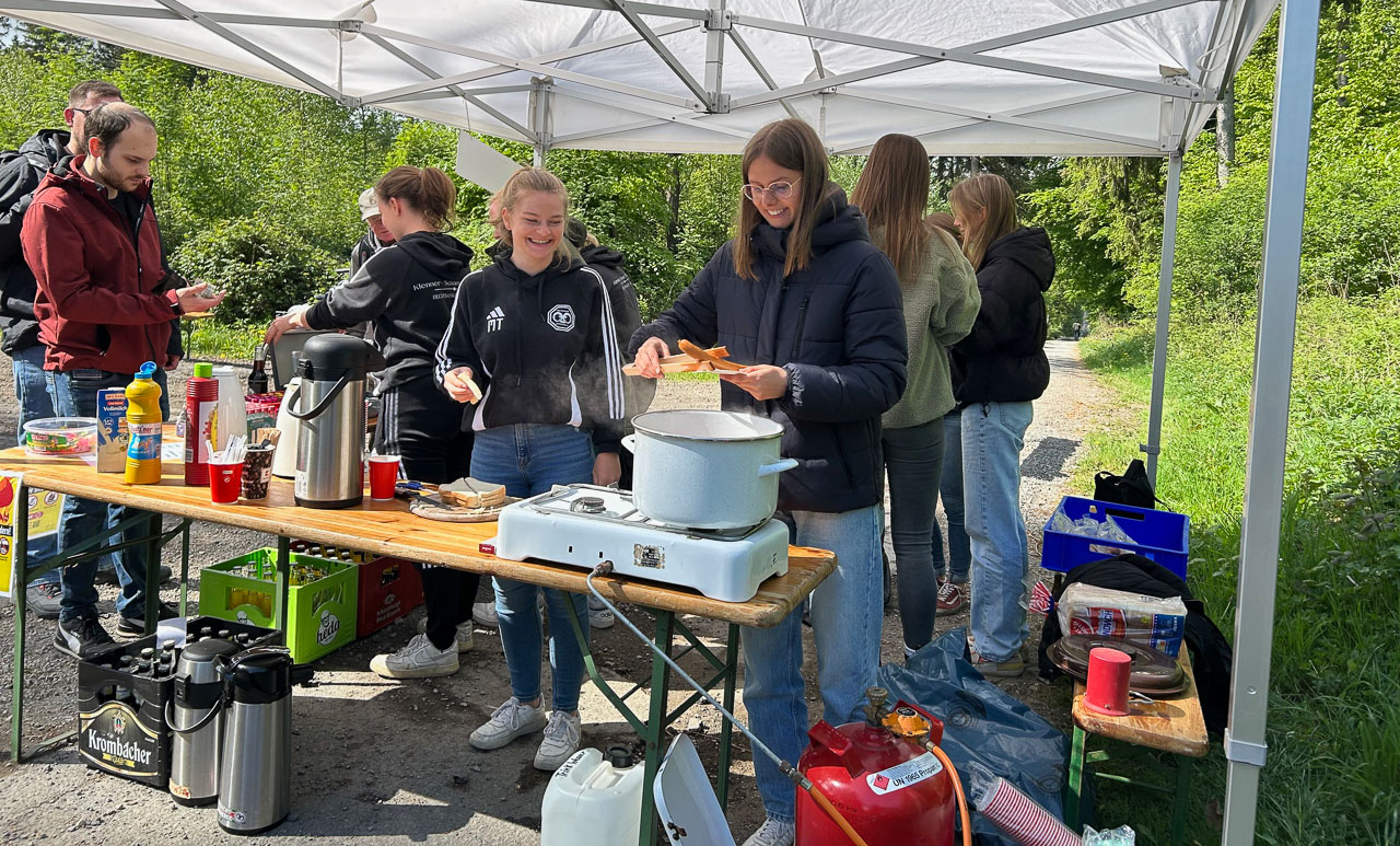 Insgesamt haben über 40 Ehrenamtliche die Durchführung des beliebten Wandertages mit Routine und sehr viel Engagement ermöglicht, sei es, dass die drei Strecken über 8, 13 und auch 19 Kilometer perfekt ausgeschildert, vier Verpflegungsstationen mit Streckenkontrollen aufgebaut und betrieben, die Ausgaben der Teilnahmescheine und der schönen Erinnerungsmedaillen im Feuerwehrgerätehaus erfolgten und genügend Brat- bzw. Currywürste mit den dazugehörigen Pommes und Getränken vorgehalten wurden.