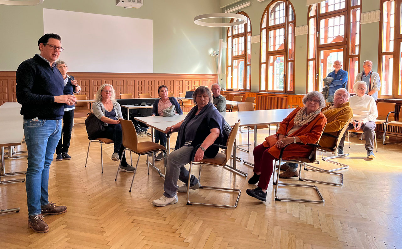 Die Senioren verfolgten dies interessiert und attestierten dem Verwaltungschef eine gute Lehrleistung. Teilnehmer Axel Hühn konstatiert: „Eigentlich sollte sowas viel öfter gemacht werden – den Bürger diese Informationen näherzubringen. Dann würden vielleicht auch nicht so viele auf Stadt und Politiker schimpfen, weil man dann versteht, warum bestimmte Dinge halt länger brauchen“.