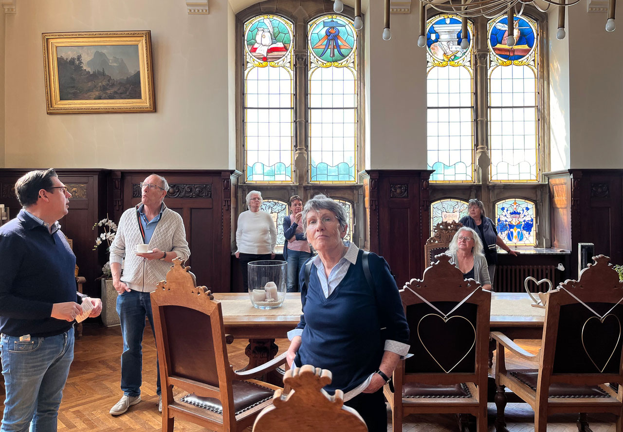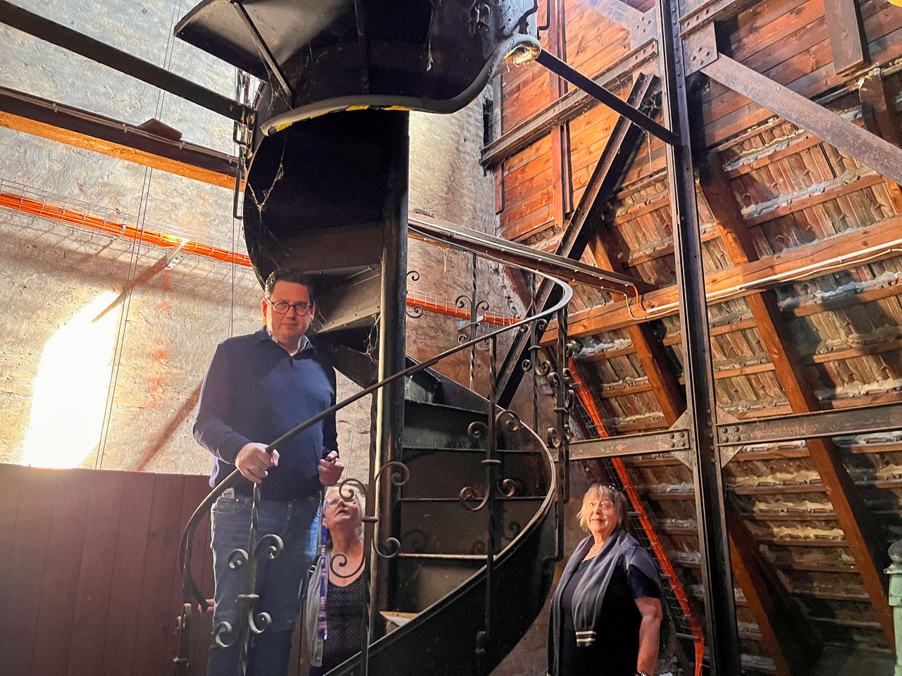 Der schmucke historische Ratssaal, einst Wirkungsstätte der Ratsherren des alten Bückeburgs, heute wird dort im ehrwürdigen Ambiente geheiratet, wusste die Besucher zu begeistern. Ebenso die Geheimtür zum Bürgermeister-Büro und die schmucke Bürgermeister-Kette von 1906. „Bürgermeister sein ist ein toller Job, aber auch herausfordernd. Das muss man mit ganzen Herzen leben und wird dafür mit vielen tollen Momenten belohnt“, weiß Wohlgemuth. Und für alle Seniorenschüler, die gut zu Fuß und schwindelfrei sind, ging es danach hoch hinaus: Eine Wendeltreppe führt hoch zum Rathausturm, der Aufstieg wird mit einer herrlichen Aussicht über die ehemalige Residenzstadt belohnt.