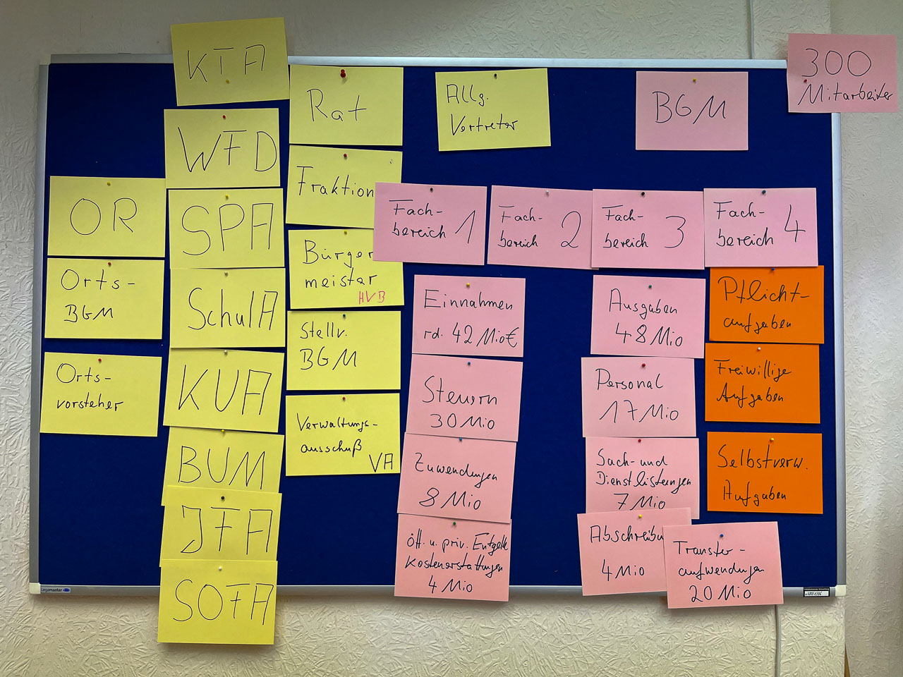 So konnte die VHS auch Bürgermeister Axel Wohlgemuth als Dozenten gewinnen. Der ließ sich nicht lange bitten und bereitete eine interessante Lehrstunde in Sachen Kommunalpolitik und städtischer Verwaltung vor. „Ich war schon etwas aufgeregt im Vorfeld und habe mich natürlich gut vorbereitet“, gesteht der Verwaltungschef. Mit zahlreichen beschrifteten Kärtchen im Gepäck, erarbeitete Wohlgemuth gemeinsam mit den „Schülern“, wie eine städtische Verwaltung aufgebaut ist, welche politischen Ausschüsse und Räte existieren, wie Einnahmen generiert und Ausgaben verteilt werden und wie die politische Entscheidungsfindung vonstatten geht.