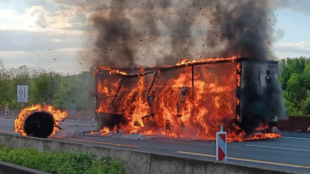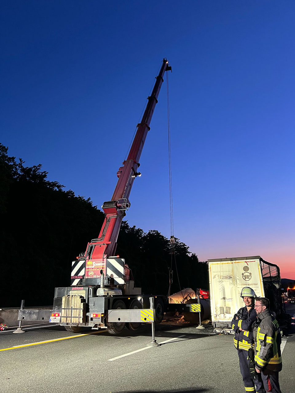 Glücklicherweise konnte der aufmerksame Lkw-Fahrer, welcher sechs tonnenschwere Papierrollen geladen hatte, seine Zugmaschine vom brennenden Auflieger abkuppeln, sodass diese keinen Schaden nahm.