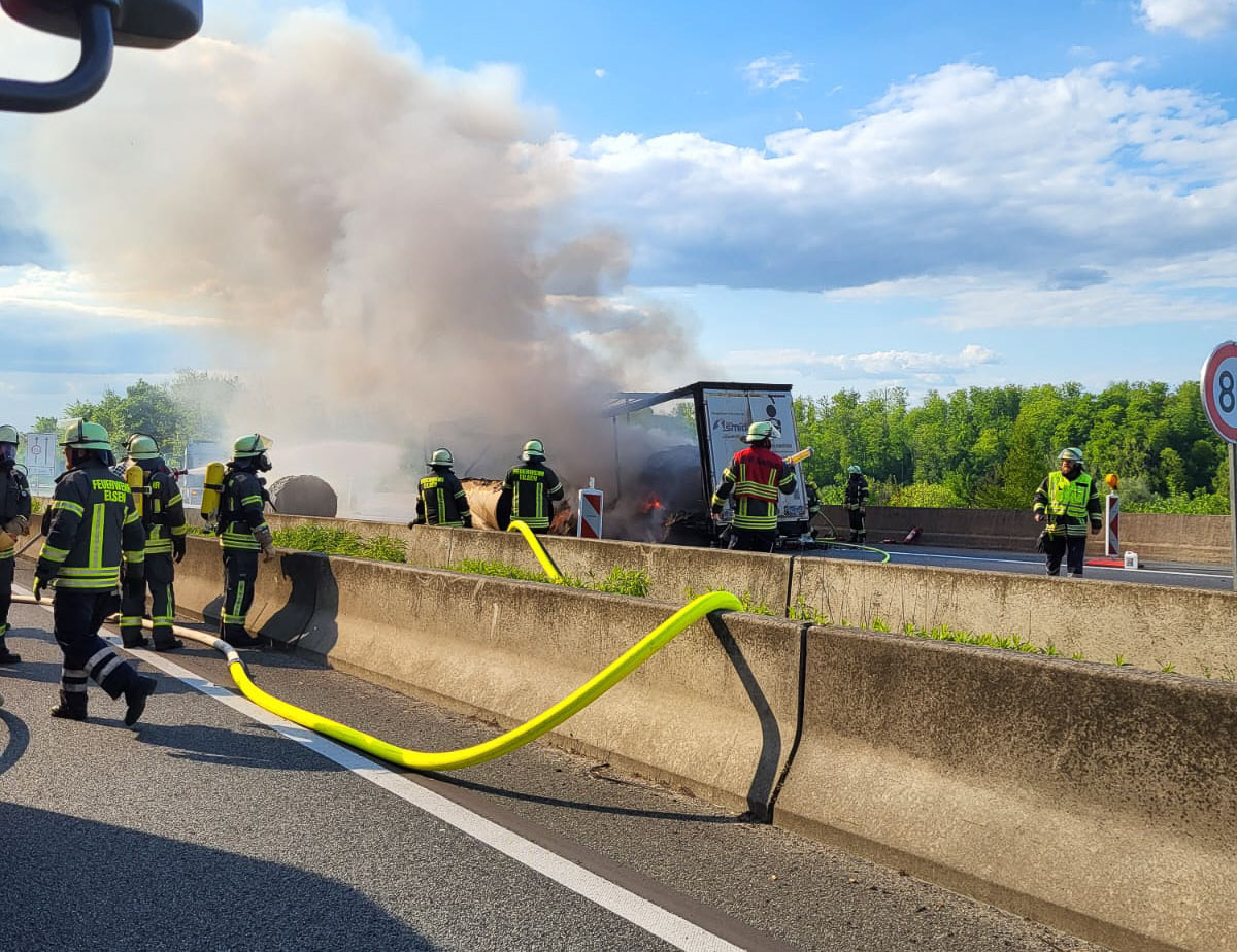 Nach einem intensiven Löscheinsatz über die mittlere Fahrbahnabtrennung der Autobahn gelang es schließlich, den Brand zu bekämpfen.