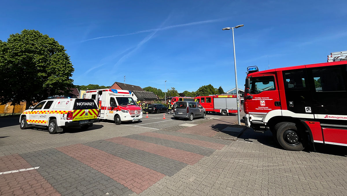 Auf dem Parkplatz des Edeka-Supermarktes in der Langen Straße ist es zu einem Unfall gekommen, bei dem eine Person in ihrem Fahrzeug eingeklemmt sein sollte.