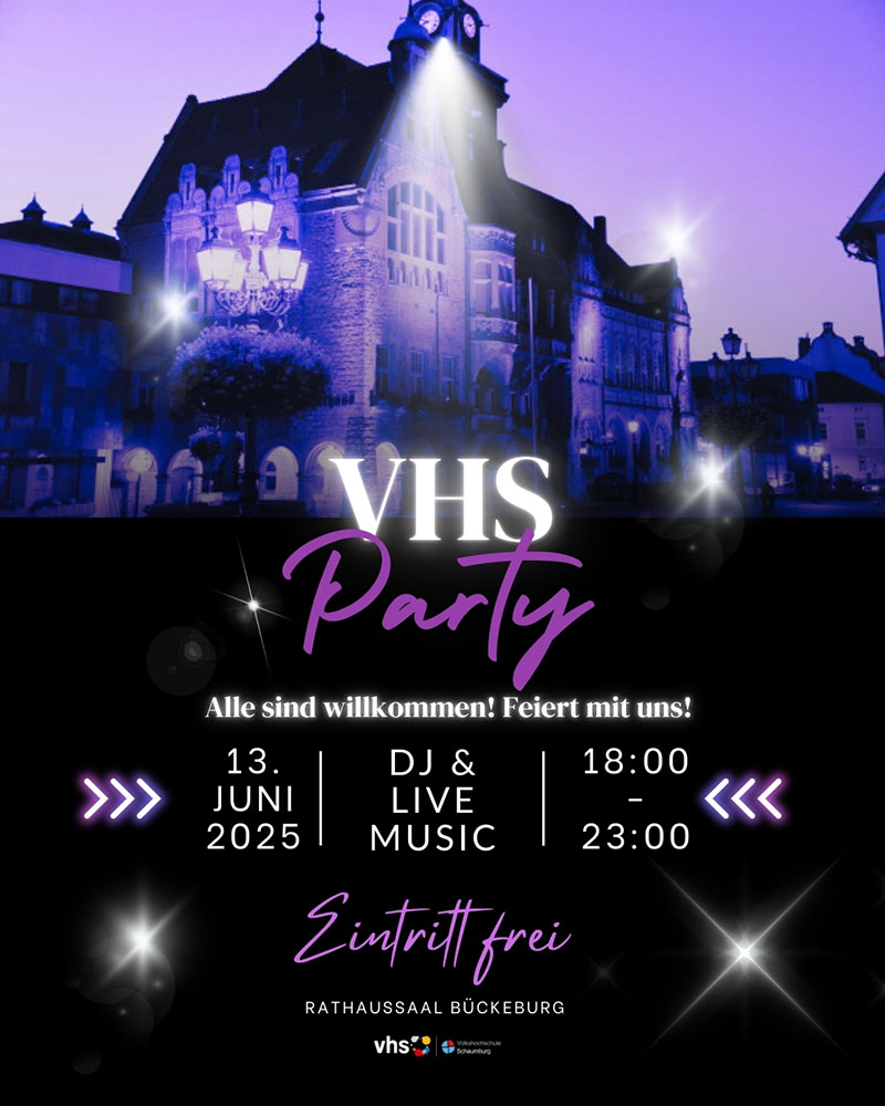 (Bückeburg) Die Volkshochschule Schaumburg lädt am Freitag, 13. Juni 2025 zur VHS Party ein.