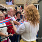 Fürstin Mahkameh durchschneidet das Absperrband in den Farben des Fürstenhauses und eröffnet die 25. Landpartie auf Schloss Bückeburg.