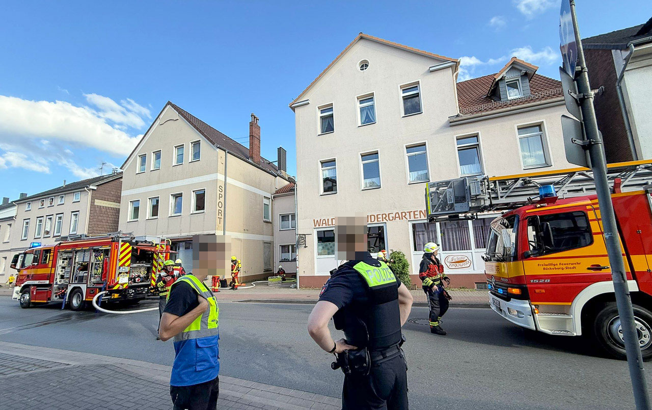 (Bückeburg) Am Donnerstagabend gegen 20 Uhr ist einem Gebäude in der Obertorstraße, in der Nähe des Waldorf-Kindergartens, ein Feuer ausgebrochen.