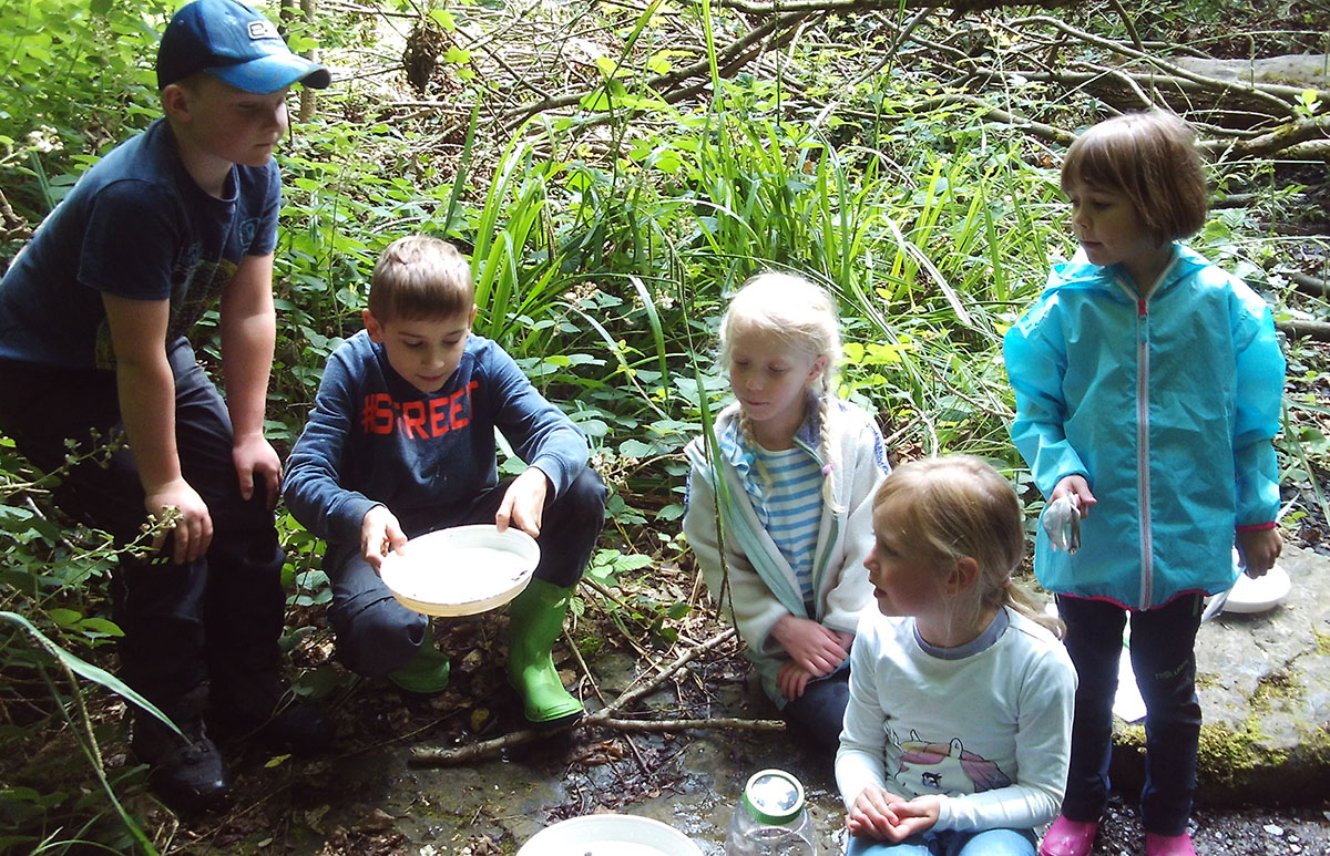 Was liegt also näher, als im Rahmen der Ferienspaßaktion einen Ausflug zum Mühlenbach in Wendthagen zu unternehmen. Sechs Bachdetektive haben begeistert im Wasser nach Kleinstlebewesen geforscht. “Ich habe was gefunden“! tönte es immer wieder durch den Wald.