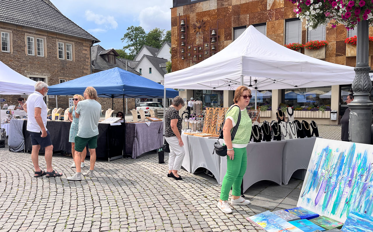 Besser könnte es nicht sein: Warme Temperaturen, die Sonne lässt sich sehen und sorgt für das beste Spotlight auf den Werken der zahlreichen ausstellenden Künstler. Farbenfroh und glitzernd war die Juliausgabe des Kunstmarktes – neben allein drei Ständen mit Schmuckhandwerk funkelten auch die Skulpturen von Heinz Mingels in der Sonne und erfreuten die Gemüter.