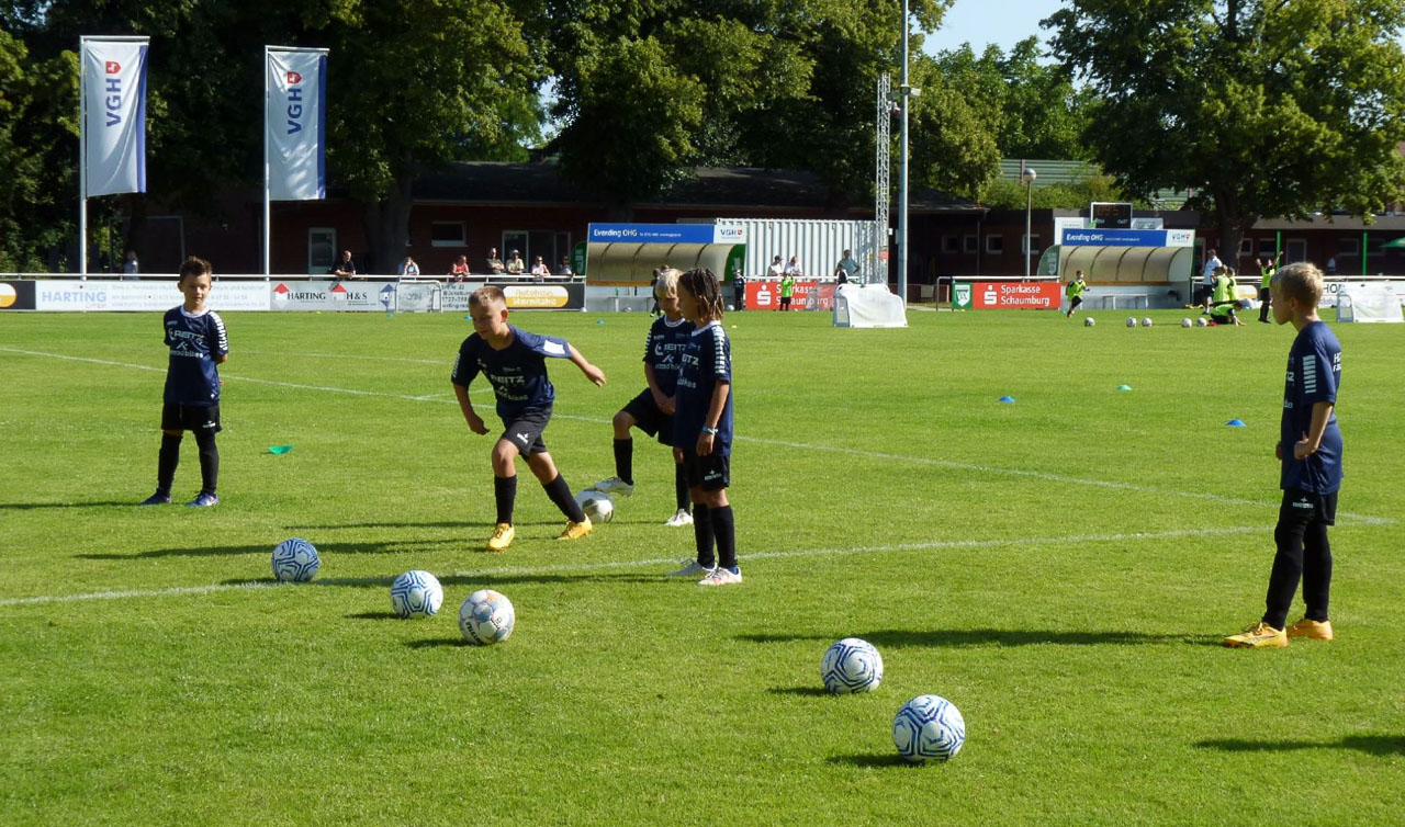 (Bückeburg) Beim Fußballcamp im Bückeburger Jahnstadion, das dieses Mal in den Sommerferien ausgetragen wurde, konnte Jürgen Holletzek mit seinen Trainern Fatmir Vata, Matthias Westerwinter, Pierre Gröne, Dominique Gröne und Roman Wojcicki 45 Kinder im Alter zwischen 5-15 Jahren begrüßen.