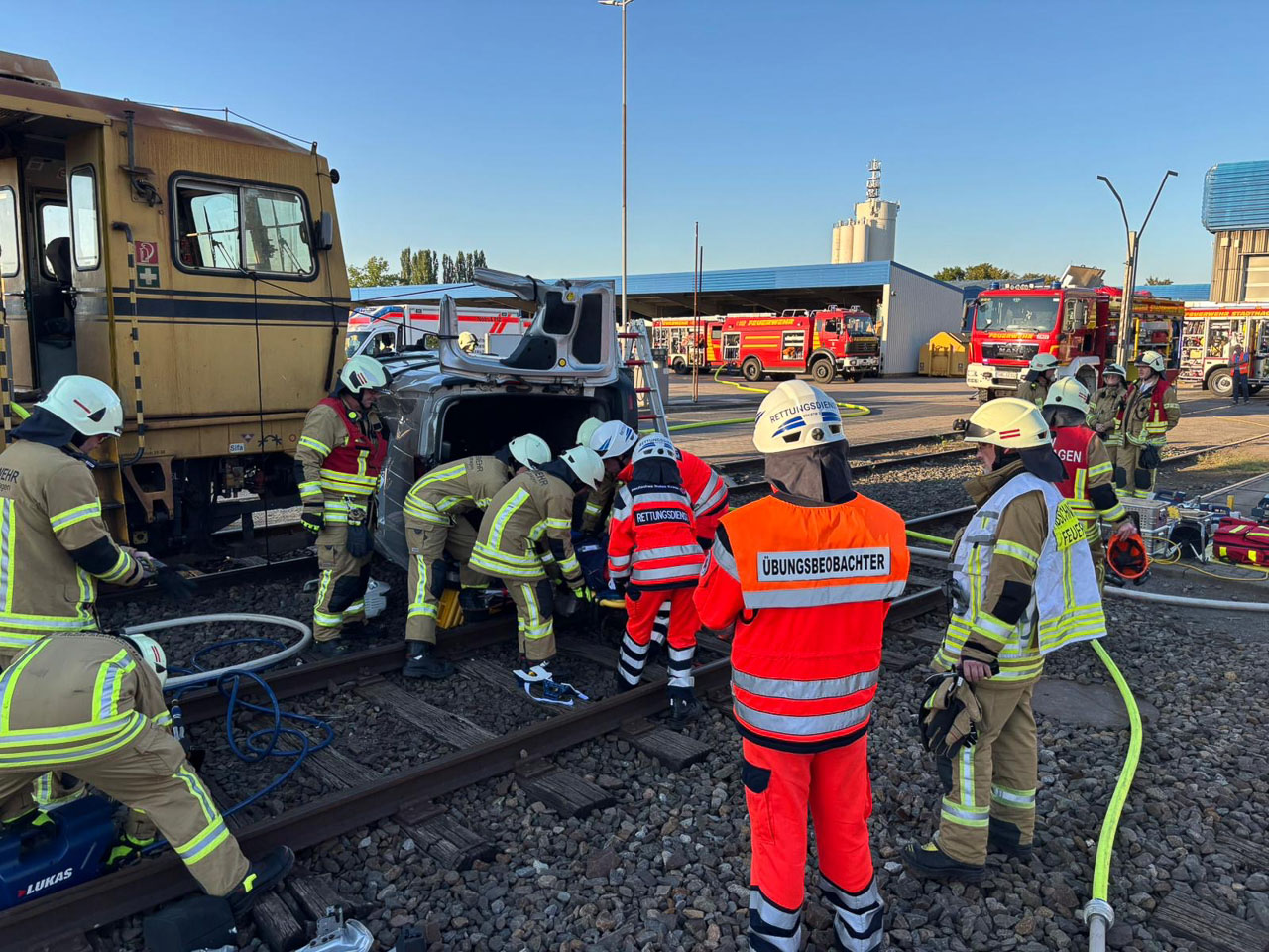(Stadthagen) Am Dienstag wurden die Feuerwehren Stadthagen und Wendthagen-Ehlen sowie der Rettungsdienst zu einem simulierten Verkehrsunfall zwischen einem PKW und einem Zug alarmiert.