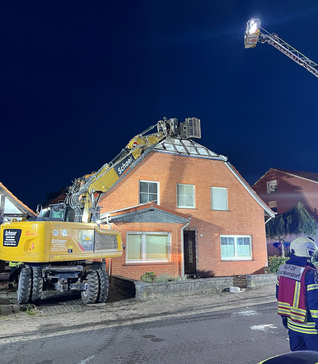 Gegen 21:30 Uhr konnte „Feuer aus“ gemeldet werden. Baufachberater des Technischen Hilfswerks (THW) begutachteten anschließend das Gebäude. Auf deren Empfehlung hin wurden die stark beschädigten Giebelwände sowie der Schornstein von einem örtlichen Abbruchunternehmen abgetragen. Die Feuerwehr Hagenburg-Altenhagen stellte bis Mitternacht eine Brandwache.