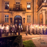 Der Fackelaufmarsch der Bataillonsmitglieder vom Markt bis zum Schlosstor war beeindruckend. Vor der imposanten Kulisse des Schlosses sorgten die Bückeburger Jäger für die musikalische Untermalung des Zapfenstreiches. Adjutant Reiner Walter meldete Stadtmajor Martin Brandt das Antreten des Bürgerbataillons, woraufhin das Kommando zum Großen Zapfenstreich erteilt wurde.