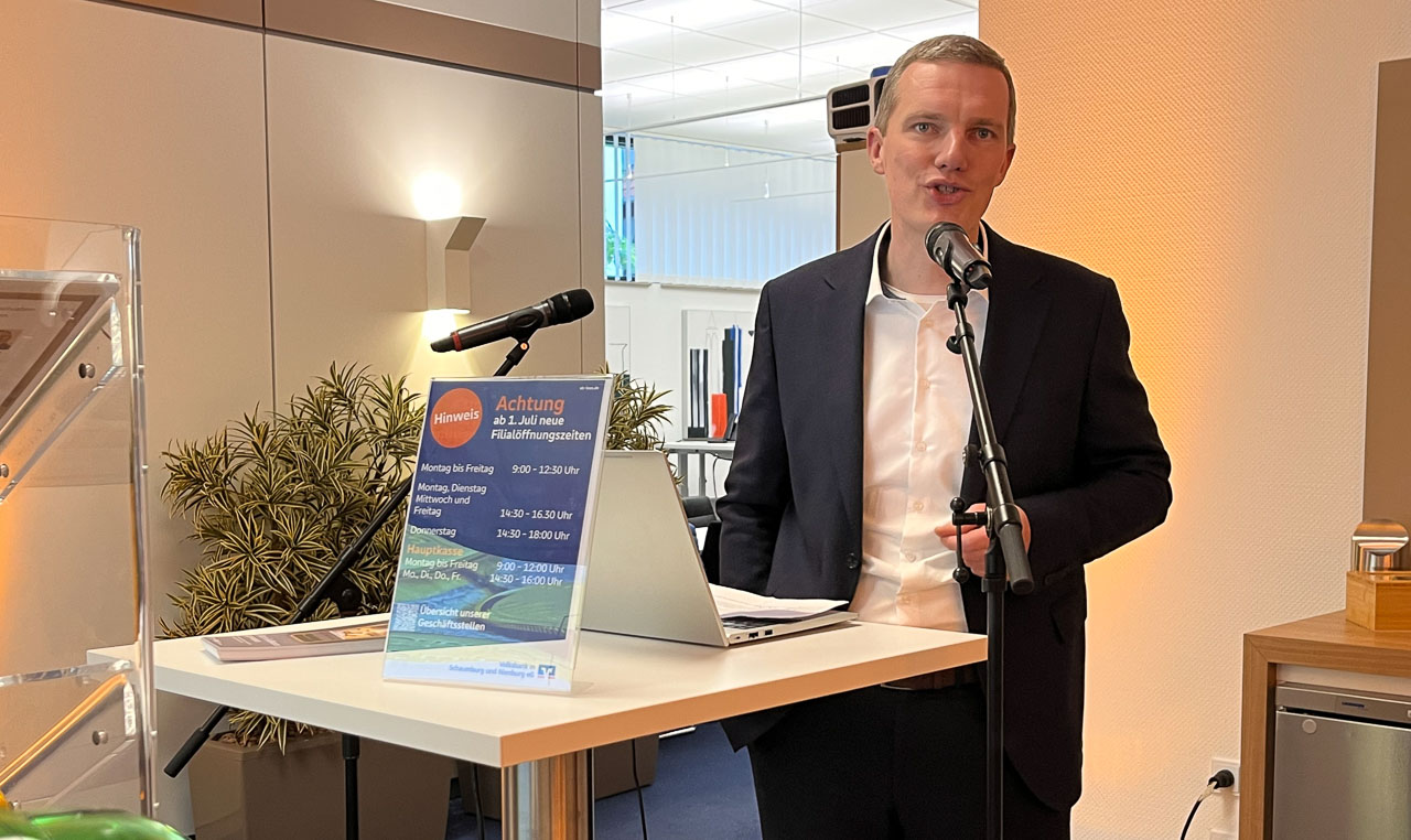Die Ausstellung führt zudem interaktiv und emotional in die breite Produktpalette von Edelmetallen ein, informiert über den Produktlebenszyklus des Goldes und stellt Vintage-Gold als nachhaltigeres Goldprodukt vor. Besondere Goldmünzen wie der Eagle, der Krügerrand oder Buffalo können eingehend betrachtet werden. Die Ausstellung ist während der Öffnungszeiten in der Filiale am Marktpatz frei zugänglich. Eröffnet wurde die Ausstellung offiziell mit einer Abendveranstaltung mit rund 70 geladenen Gästen. Stefan Hass, Vertriebsmanager Verbund und Leitung Nord/Ost der Reisebank AG, hielt einen Vortrag rund um die Anlagemöglichkeiten in Gold. Quintessenz: In keinem breitgefächerten Sparplan sowie bei Anlegern und Menschen, die nicht auf eine schnelle Rendite, sondern auf handfeste Wertanlagen Wert legen, darf Gold keinesfalls fehlen. „Gold ist ein Finanzprodukt zum Anfassen“, fasst der Experte zusammen.