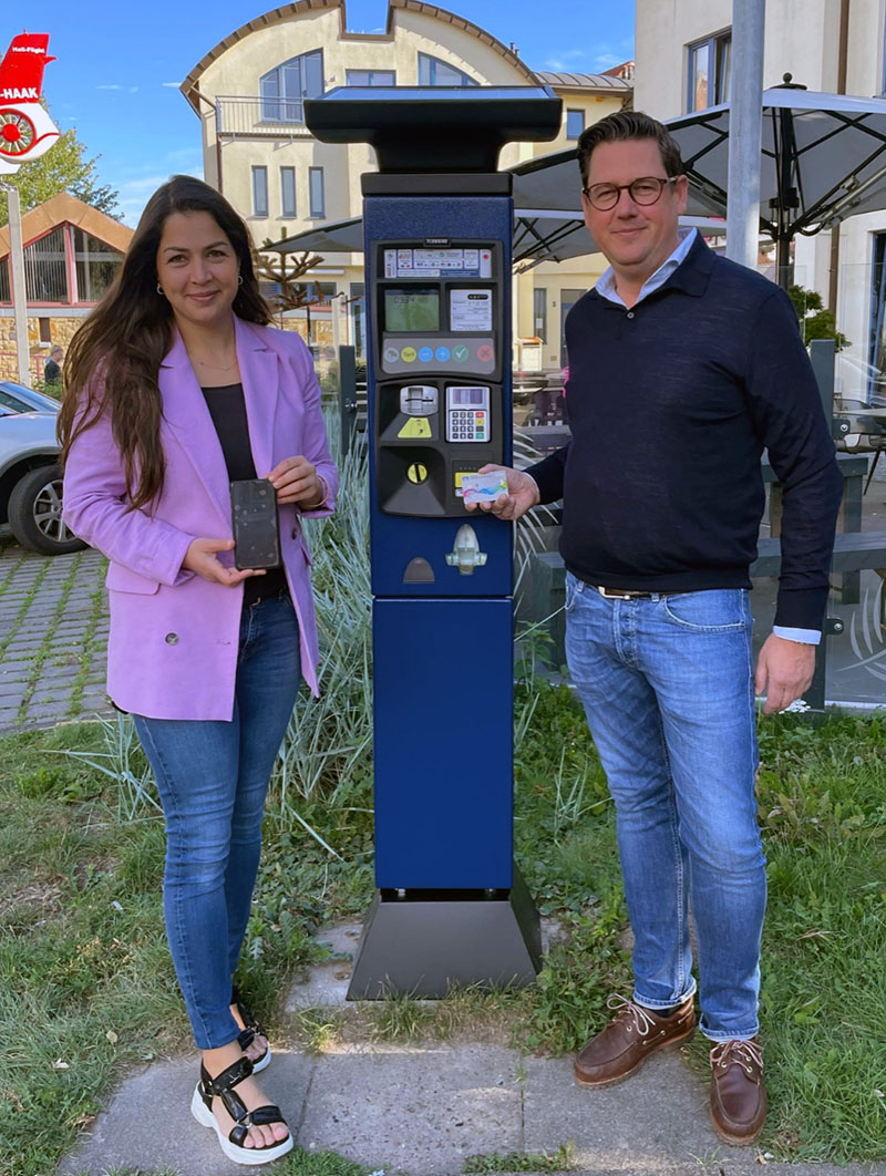 Auf dem Dr.-Witte-Platz wurden drei neue Parkscheinautomaten aufgestellt, an denen die neue Bezahlmöglichkeit vorhanden ist. Auch der Parkscheinautomat auf dem Sablé-Platz wurde erneuert. Daneben haben die beiden blauen Parkscheinautomaten auf den Parkplätzen der P&R-Anlage ein Upgrade zum bargeldlosen Zahlen erhalten. Bis Ende des Jahres sollen noch drei weitere Parkscheinautomaten mit dieser neuen Funktion folgen.