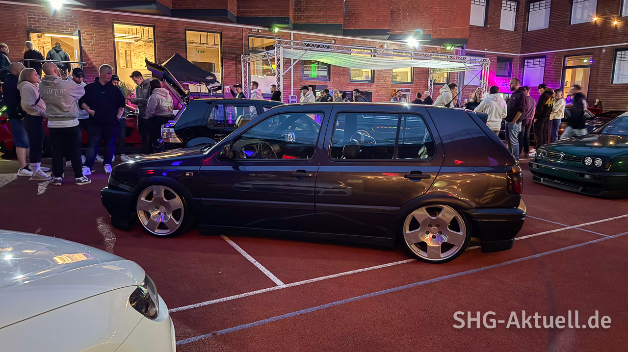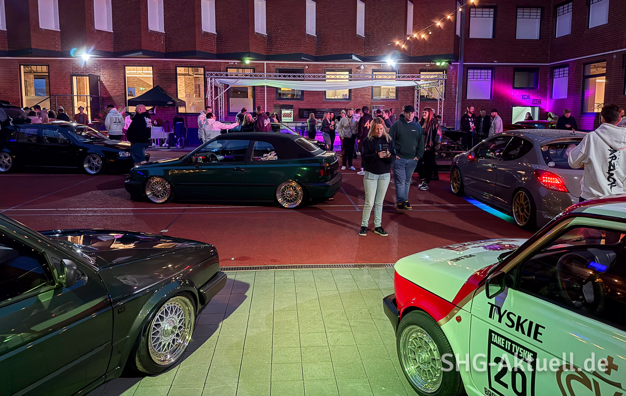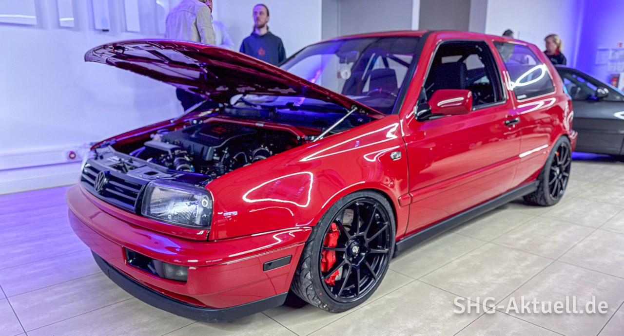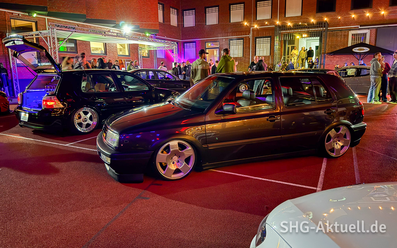 Die Autos wurden an mehreren Locations im Zuchthaus und drumherum ausgestellt. Besondere Modelle und Umbauten glänzten im Showroom um die Wette. So auch der feuerrote VW Golf 3 von Daniel Buhr aus Bad Nenndorf. Einst als braves 60-PS-Modell vom Band gelaufen, verfügt der Volkswagen nun über ein Vielfaches der ursprünglichen Motorleistung.