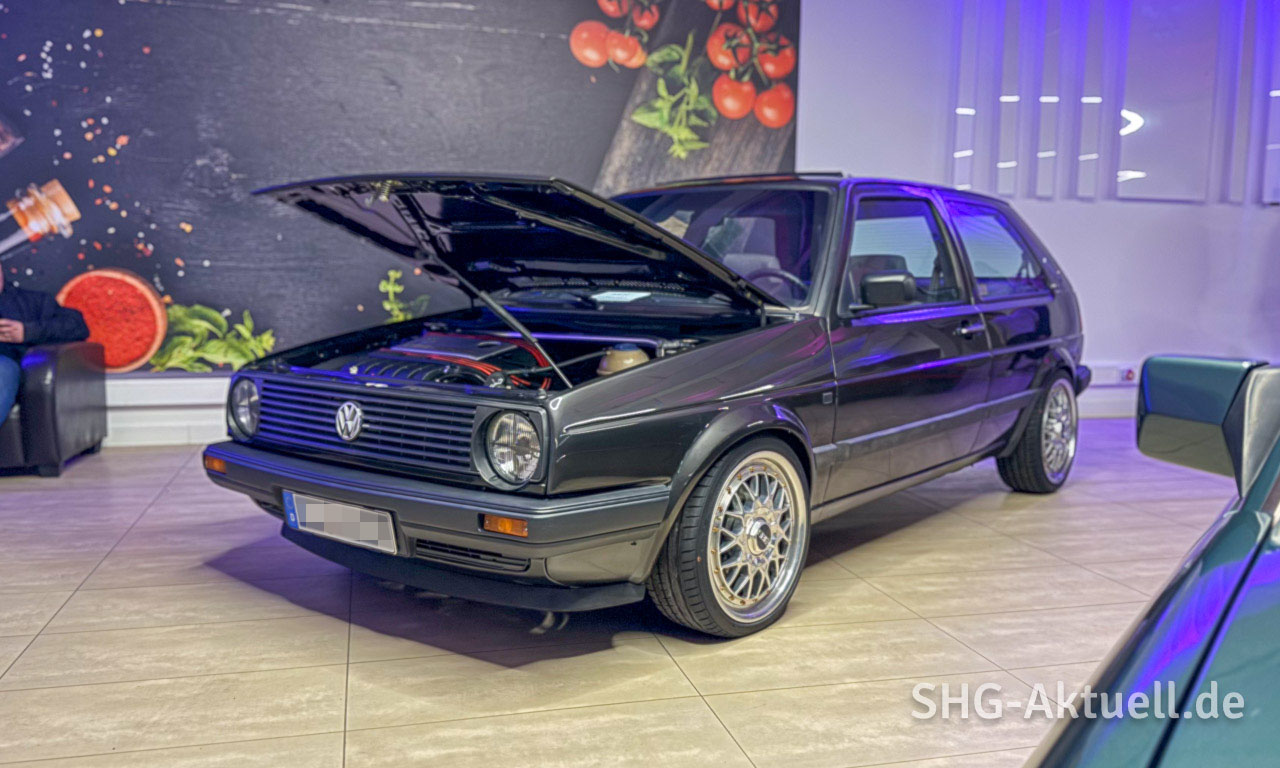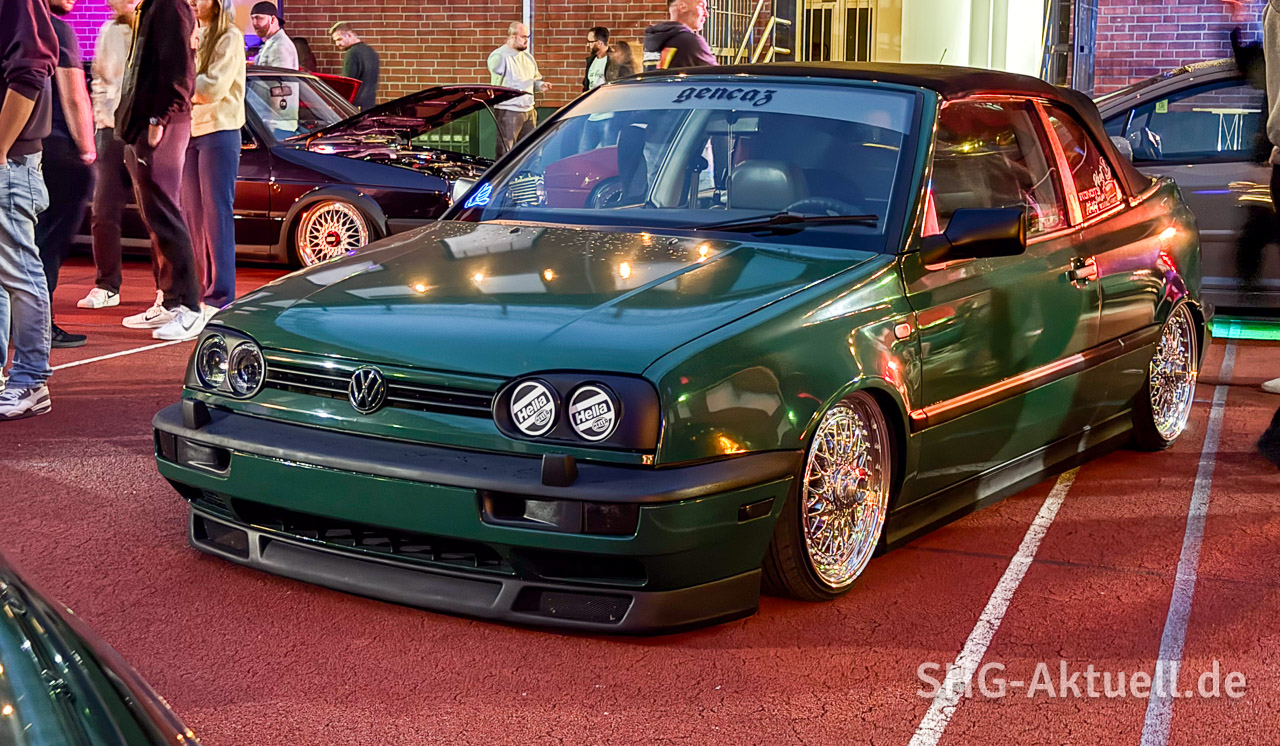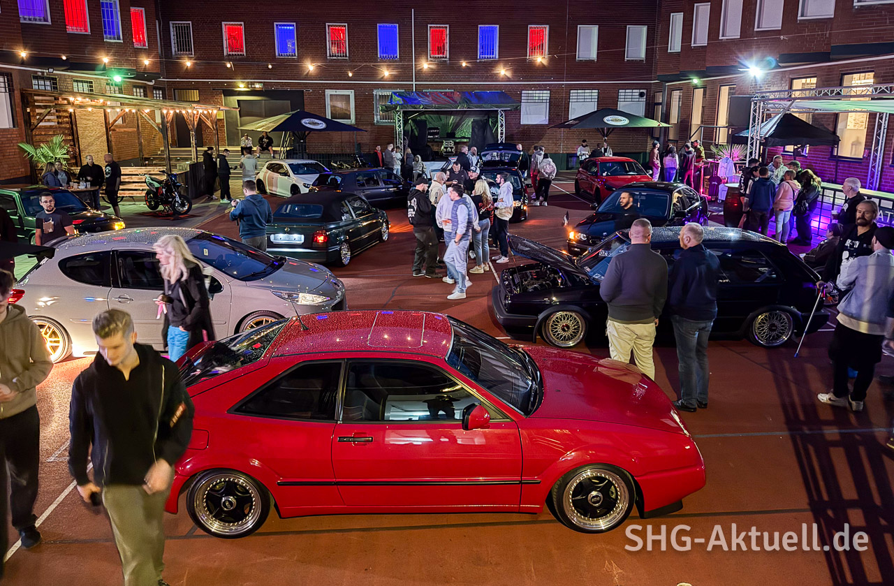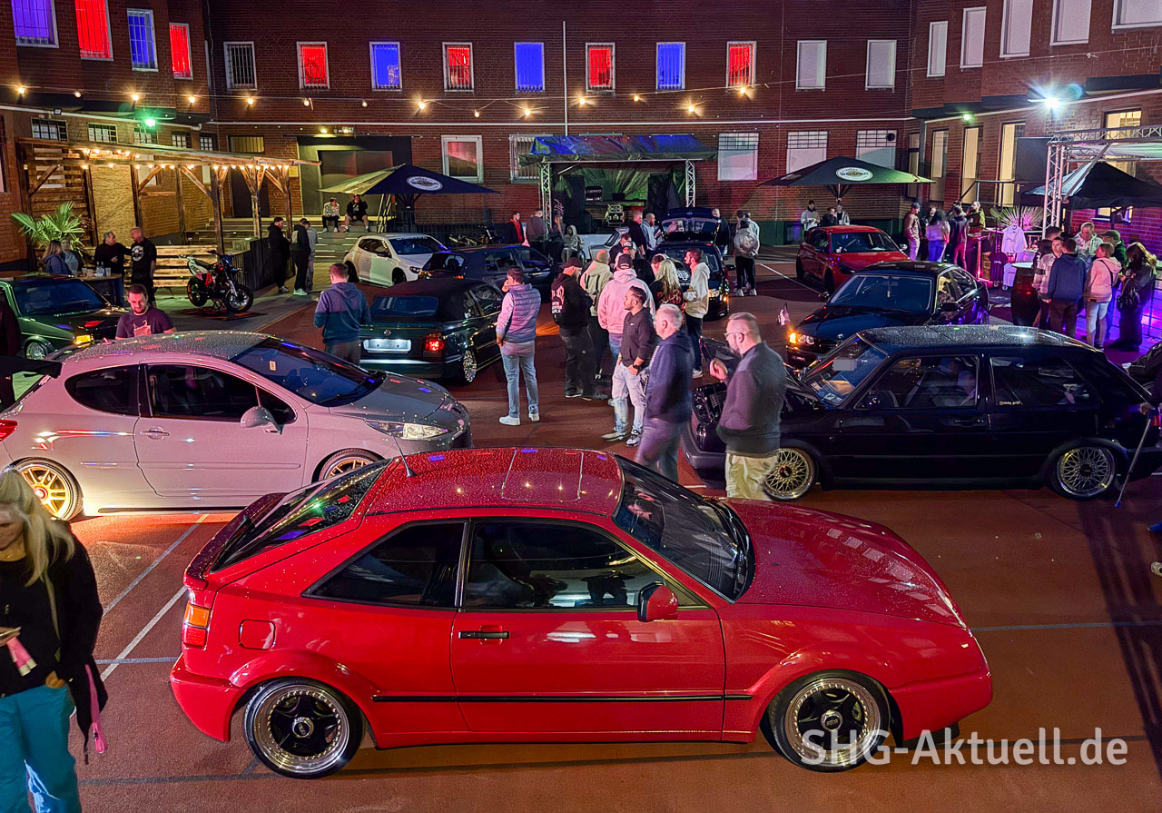 Die Autos wurden an mehreren Locations im Zuchthaus und drumherum ausgestellt. Besondere Modelle und Umbauten glänzten im Showroom um die Wette. So auch der feuerrote VW Golf 3 von Daniel Buhr aus Bad Nenndorf. Einst als braves 60-PS-Modell vom Band gelaufen, verfügt der Volkswagen nun über ein Vielfaches der ursprünglichen Motorleistung.