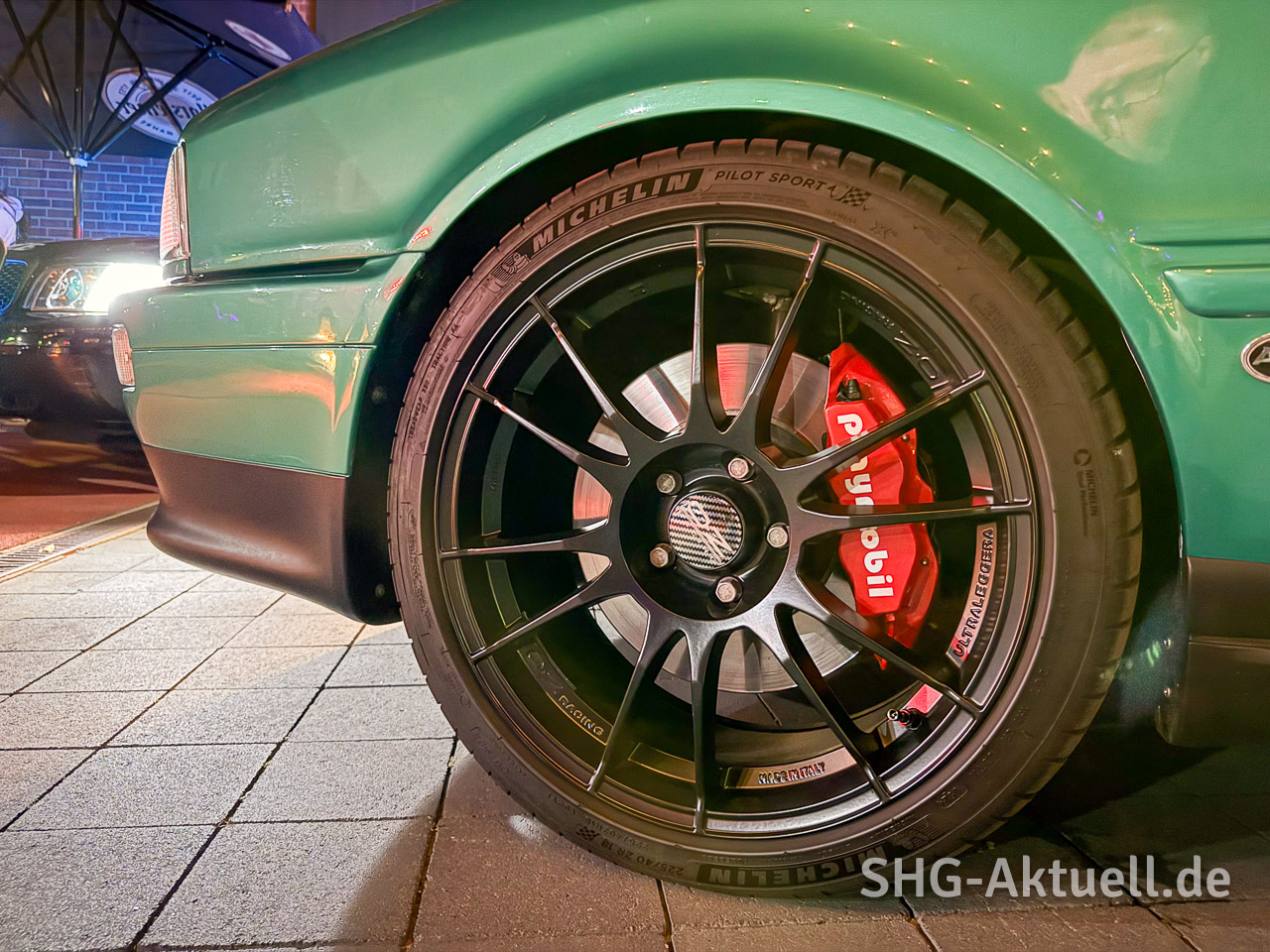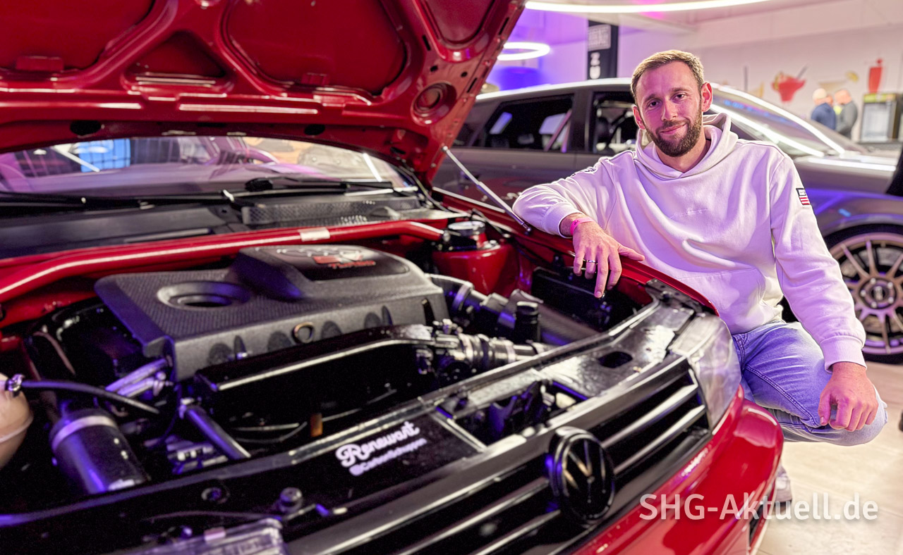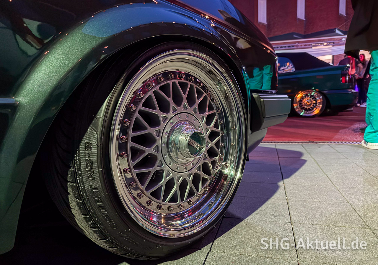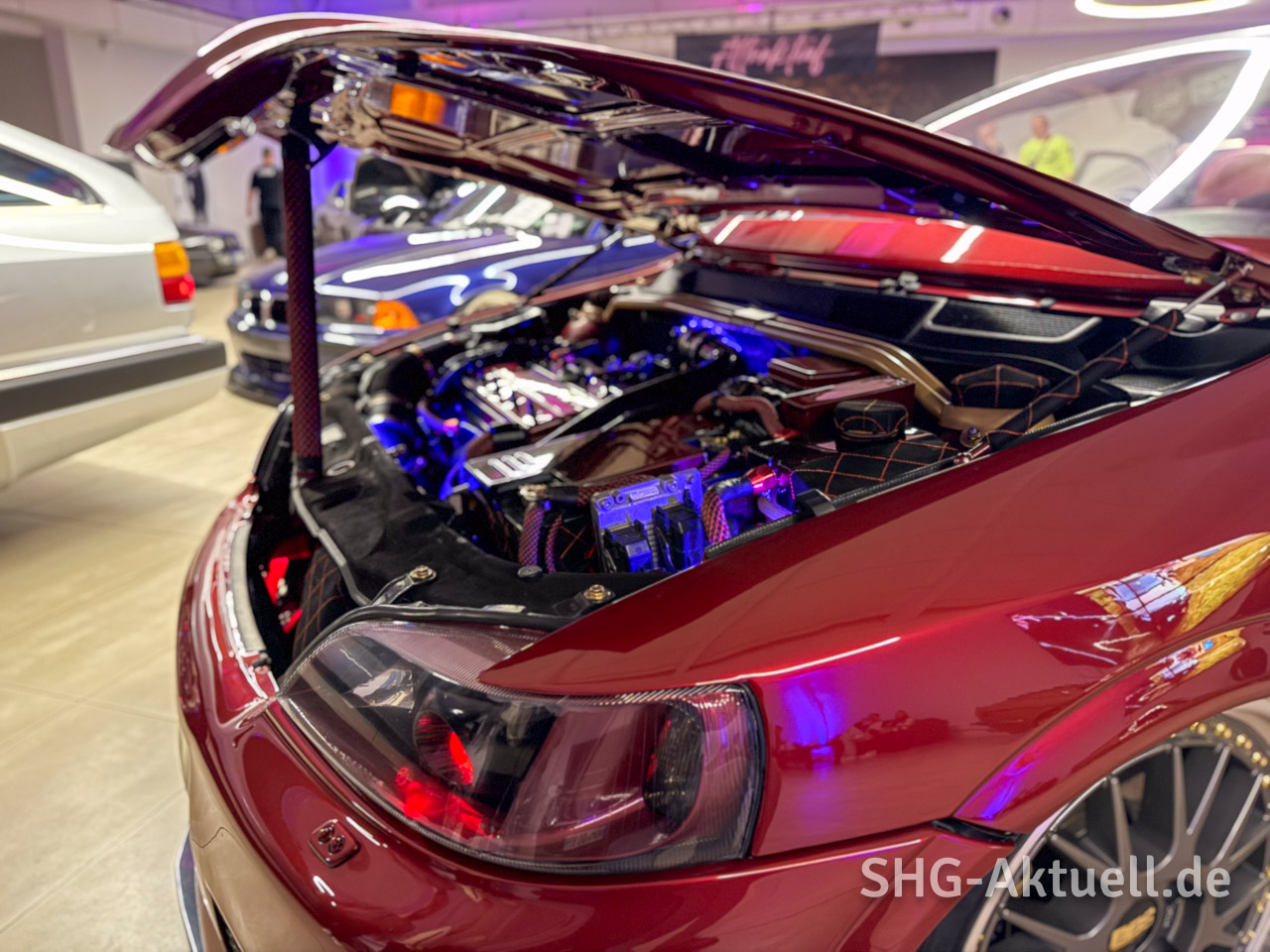 Die Autos wurden an mehreren Locations im Zuchthaus und drumherum ausgestellt. Besondere Modelle und Umbauten glänzten im Showroom um die Wette. So auch der feuerrote VW Golf 3 von Daniel Buhr aus Bad Nenndorf. Einst als braves 60-PS-Modell vom Band gelaufen, verfügt der Volkswagen nun über ein Vielfaches der ursprünglichen Motorleistung.