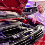Dabei wurde das Originaltriebwerk nicht frisiert, sondern gleich durch einen potenten Audi-S3-Motor ersetzt und dieser wiederum aufgerüstet. Der TÜV weiß Bescheid und die Bremse wuchs mit ihren Anforderungen mit: Der Golf verzögert mit einer Porsche-Anlage und verfügt so über ausreichende Leistungsreserven.