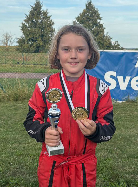 Die entscheidende Wende brachte das letzte Rennen. Nach einer mutigen Änderung der Übersetzung am Kart zeigte Henry ein völlig neues Gesicht: Endlich konnte er attackieren, überholen und Druck machen und die Geschwindigkeit auf der Geraden war da! Sogar in den Kurven war er schneller, obwohl das gar nichts mit der Übersetzung zu tun hatte. Zwischenzeitlich war er auch auf Platz zwei seiner Klasse, aber leider musste er in der allerletzten Kurve auch Platz drei noch hergeben.
