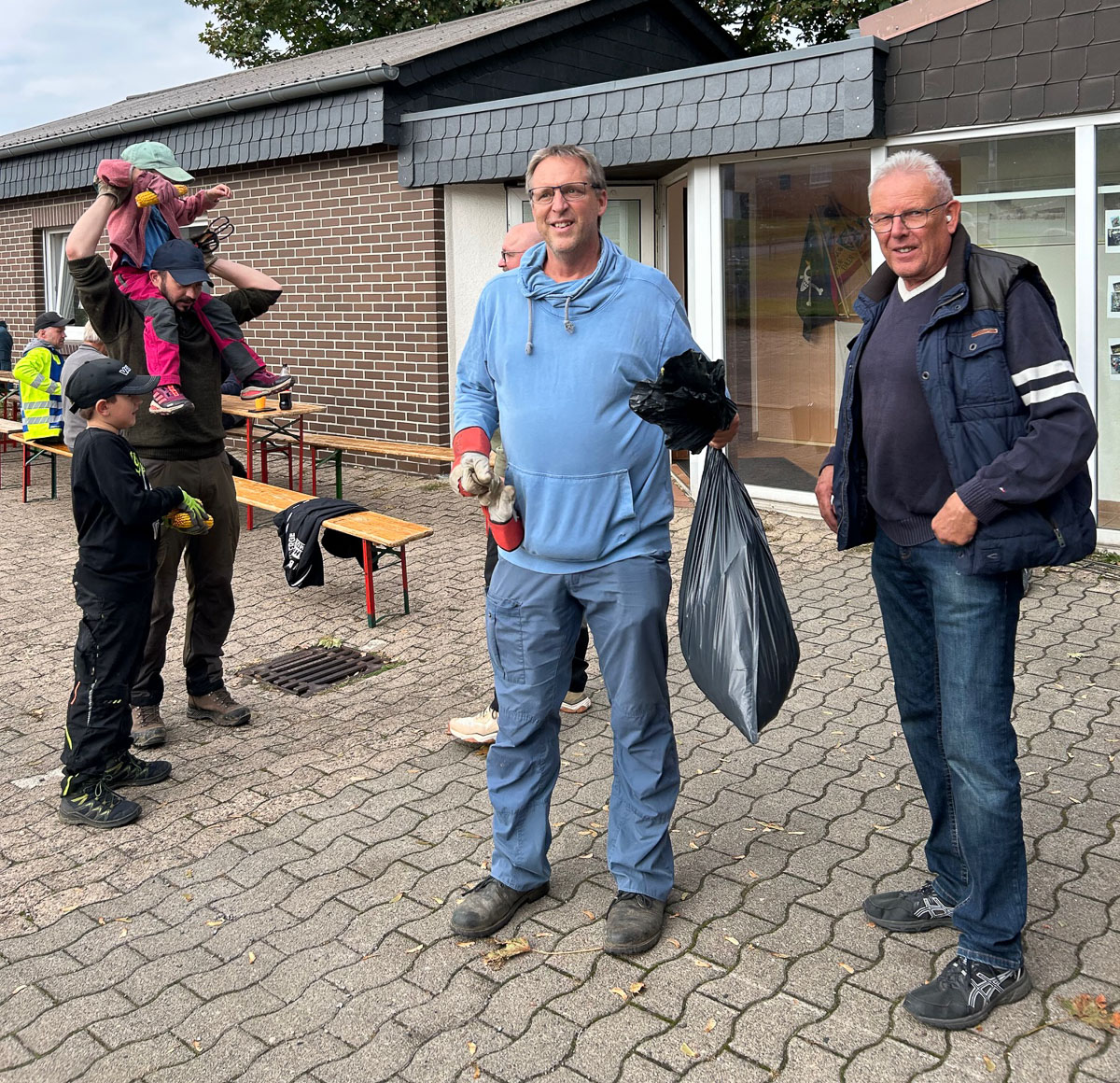 Die ersten Müllsammlergruppen kamen gegen 12.50 Uhr, also nach gut 90 Minuten des Suchens und Sammelns wieder am Wendthäger Feuerwehrgerätehaus an. Dort warteten gegrillte Bratwürste und kühle Getränke als kleiner Dank auf sie.