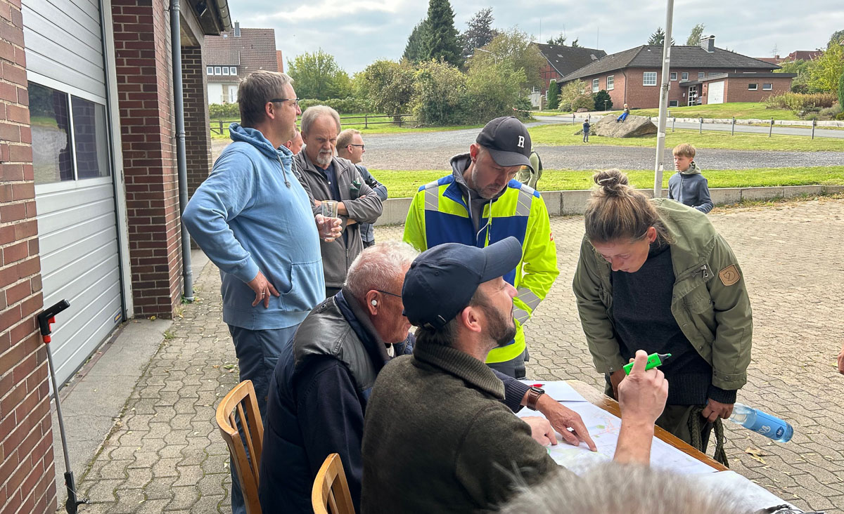Aufgeteilt in sieben Gruppen für die weit auseinandergezogenen Ortsteilquartiere, kartiert von Ortsbürgermeister Michael Koller und den Fraktionsvorsitzenden Sven Auhage (SPD) und Jörg Ostermeier (CDU) (siehe Kartenfoto Nr. 8379), wurden von ihnen mit Kartenmaterial für ihr Sammelgebiet, mit jeweils zwei Müllsäcken und Handschuhen ausgestattet.