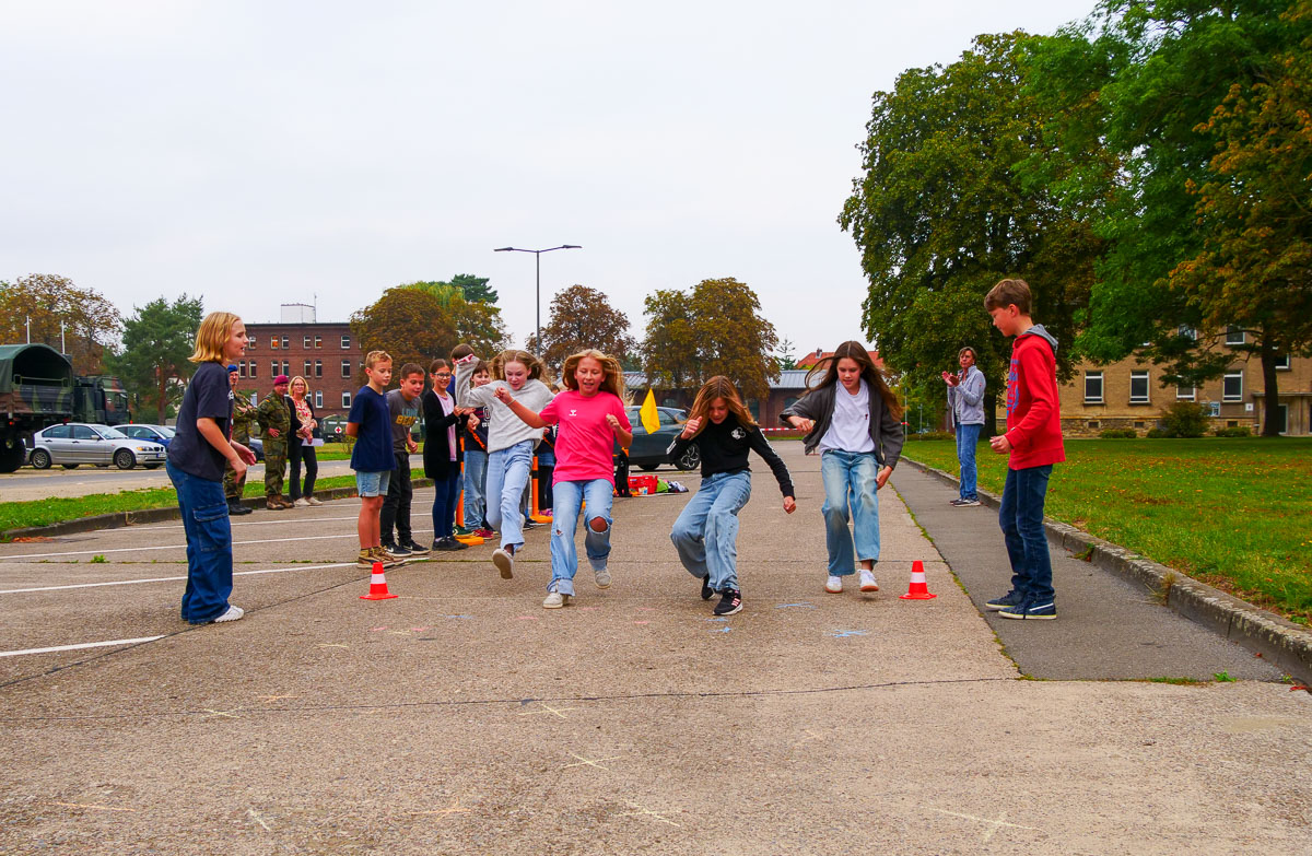 Auf dem Gelände der Jägerkaserne konnten die Schüler ungestört und sicher am Verkehrsprojekt „Achtung Auto“ teilnehmen. Die Bundeswehr-Angehörigen haben zur besseren Verdeutlichung des toten Winkels sogar einen Bus bereitgestellt.