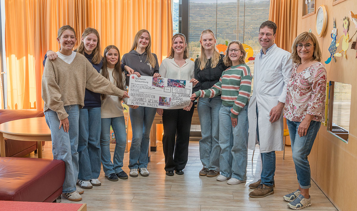 Mit großer Freude und Stolz übergaben die Schülerinnen und Schüler ihre gesammelte Spende in Höhe von 1.600 Euro an die Kinderkrebsstation E 22 im Johannes Wesling Klinikum in Minden, um betroffene Kinder und ihre Familien in einer schweren Zeit zu unterstützen.