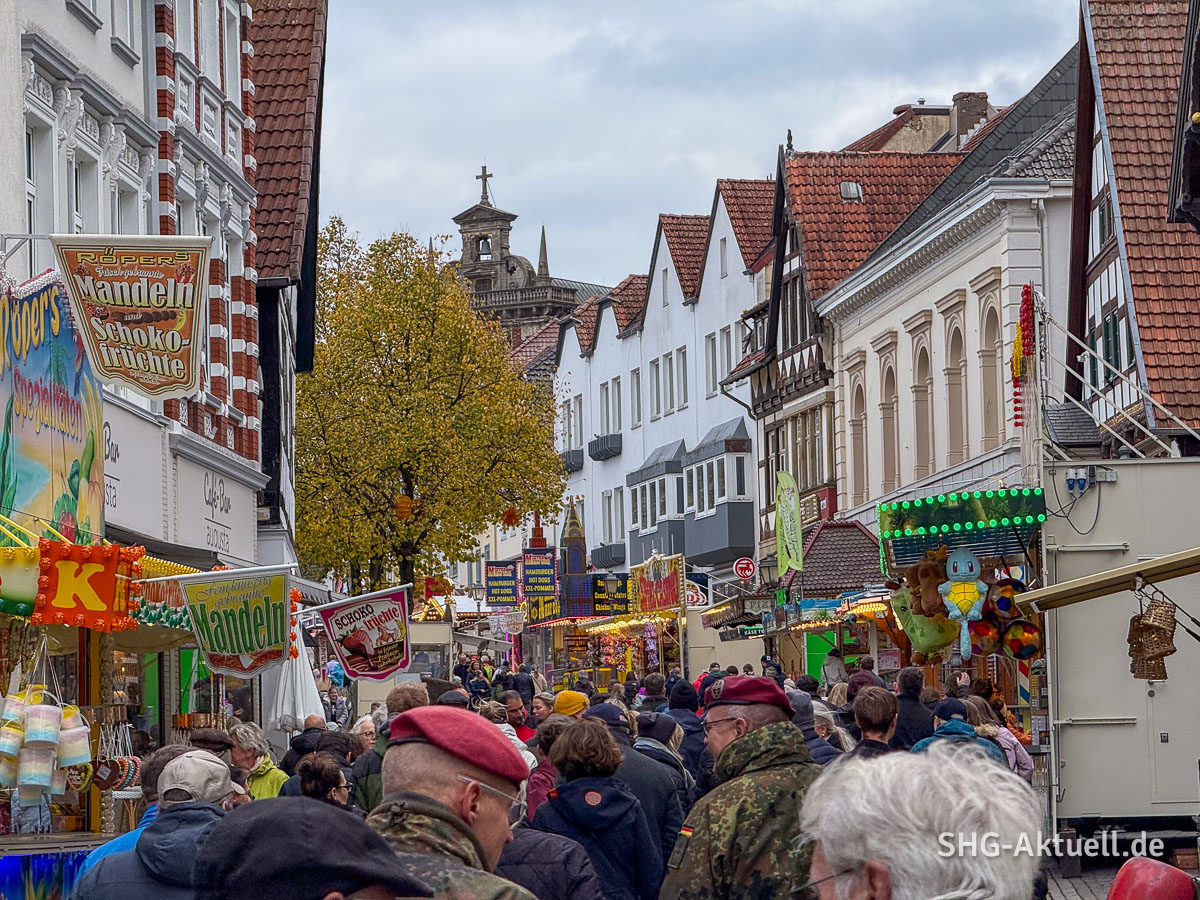 Erstmalig startete die Messerunde im Freien. Bürgermeister Axel Wohlgemuth konnte Gäste aus Politik, Wirtschaft und Reihen der Bundeswehr bei originalem Herbstwetter begrüßen. Amtskolleginnen aus dem benachbarten Obernkirchen (Dörte Worm-Kressin) und Porta Westfalica (Anke Grotjohann) statteten dem Herbstmarkt einen Besuch ab.