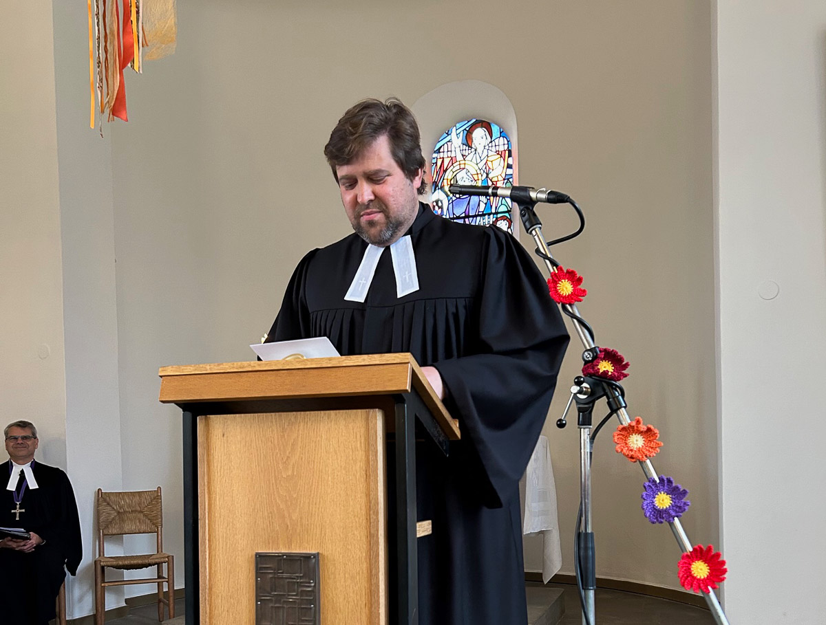 Landesbischof Dr. Oliver Schuegraf ließ es sich nicht nehmen, die Predigt an diesem Tag des Innehaltens und des demokratischen Dialogs zu halten. Unter der Grundaussage „Darum legt die Lüge ab und redet die Wahrheit, ein jeder mit seinem Nächsten…“ und „lasst kein faules Geschwätz aus eurem Mund gehen, sondern redet, was gut ist…“ bezog sich der Inhalt seiner Predigt an die aufmerksamen Besucherinnen und Besucher auf ein gelebtes, demokratisches Miteinander, das die Wege des Dialoges nicht aufgeben dürfe. Nicht nur im Sinne der Bibel auch im Sinne unseres Grundgesetzes, so Schuegraf, sei Menschenwürde unteilbar. „Wir reden um zu verbinden“, so sein abschließendes Statement.