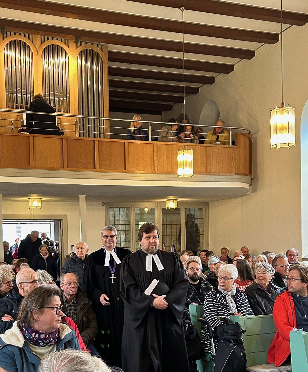 „Wie Weihnachten“ so Pastor Bangert. Denn bis auf den allerletzten Platz war die Kirche besetzt. Dirk Bangert weiter: „Wir Christen stehen unter dem Kreuz und bestaunen den Regenbogen“. Der Gottesdienst war von der Kirchengemeinde gemeinsam mit dem Bündnis „Die Bergkette ist bunt“ als Zeichen für Demokratie, Menschenwürde und Nächstenliebe in kürzester Zeit gegen das am selben Tag im Haus „Am Mühlenbach“ stattgefundene Oktoberfest der AfD auf die Beine gestellt worden.