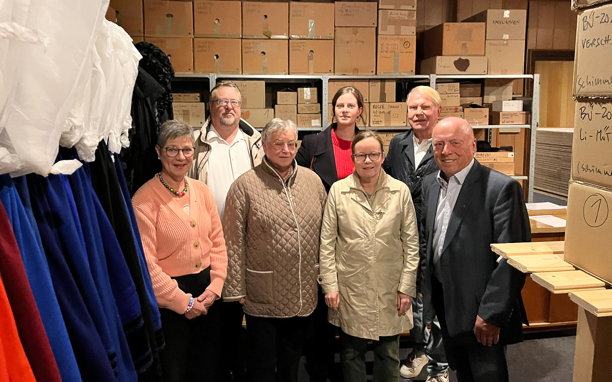 Doch gerade die fachgerechte Lagerung stellt das Museum schon seit langem vor eine große Herausforderung. Neue Regale waren notwendig, um die zahlreichen Stücke ordnungsgemäß aufzubewahren – doch diese kosten natürlich Geld. Umso erfreulicher, dass sich hier mit der Schaumburger Landschaft, dem Lions Club Schaumburg und Dieter Kölling, Kölling Glas, großzügige Unterstützer gefunden haben: Insgesamt 6000 Euro haben sie für den Erwerb und das Aufstellen neuer Schwerlastenregale für das Trachtenmagazin spendiert, 13 Regalmeter sorgen nun für den notwendigen Platz, um die guten Stücke sachgemäß zu lagern. Unter anderem aus dem Investitionsprogramm für kleine Kultureinrichtungen kommt ein Teil der Zuwendung. „Ihre Trachtensammlung hier ist ein tolles Projekt und unterstützenswert“, stellt Lu Seegers, Geschäftsführerin der Schaumburger Landschaft, fest und macht direkt darauf aufmerksam, dass dieses Programm auch im kommenden Jahr glücklicherweise fortgeführt werde.