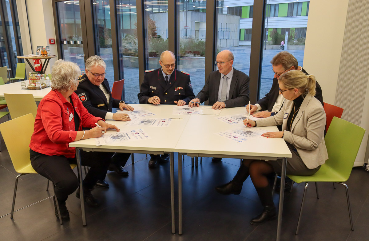 Ein zentraler Programmpunkt war die Unterzeichnung einer Charta, in der sich zahlreiche Akteure, darunter Landrat Jörg Farr, die Geschaftsführerin des Klinikums, Diana Fortmann, der Geschäftsführer des DRK Rettungsdienst- und Krankentransport e.V. in Schaumburg, Bernd Gerberding, Inge Wehking als Stellvertreterin für das Netzwerk*Gleich, Joachim Muth, stellvertretender Kreisbrandmeister, sowie der Leiter der Polizeiinspektion Nienburg/Schaumburg Stefan Schara, klar zu einem respektvollen und friedlichen Miteinander bekennen.