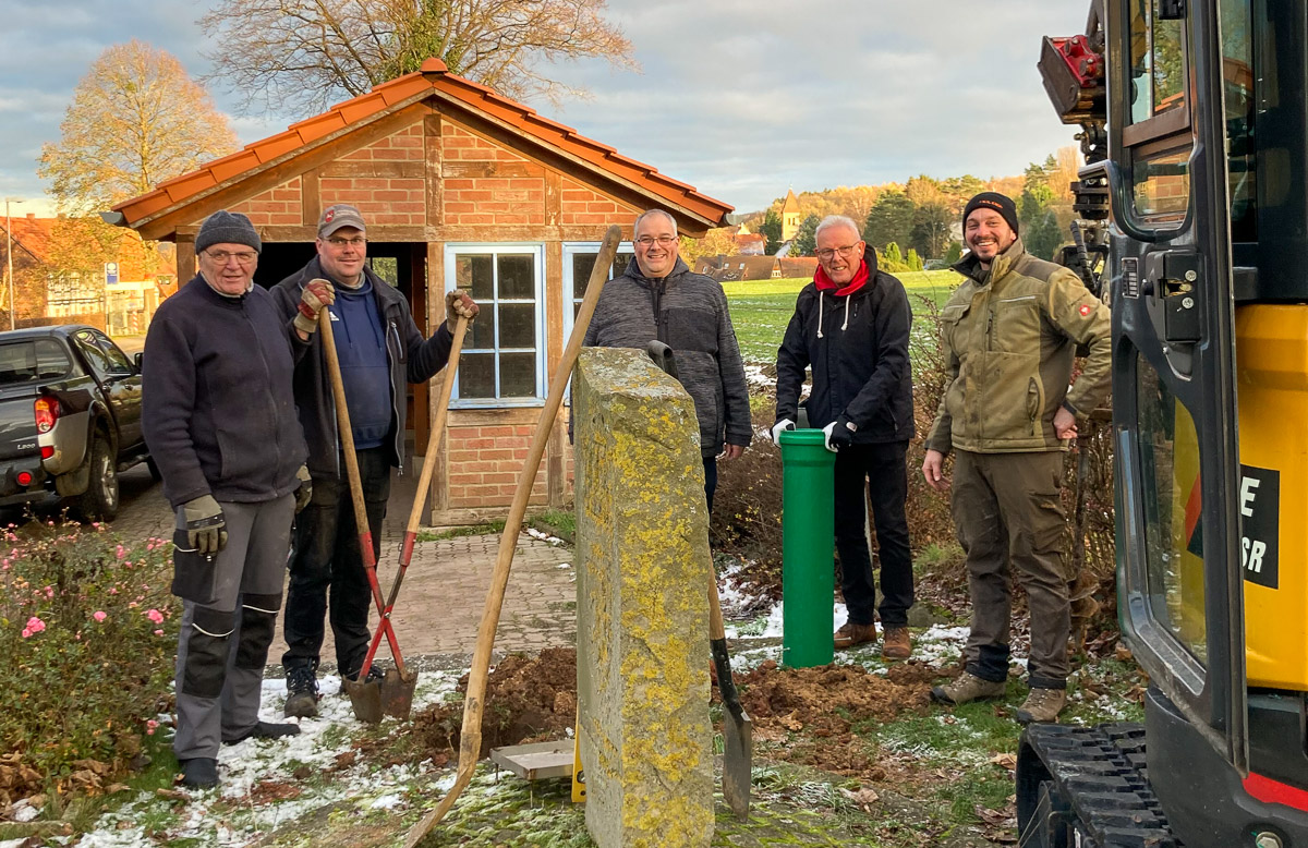 Jüngst war es soweit. Ortsbürgermeister Koller, sein Stellvertreter Jörg Ostermeier, die Ortsratsmitglieder Sven Auhage und Wilfried Langemeier sowie der Ortsvorsteher aus Krebshagen, Dennis Dreyer, brachten ihre Spaten, Schaufeln und den Minibagger zum Einsatz. In gut anderthalb Stunden hatten die fünf Volksvertreter ihre Arbeit für den Steuerzahler kostenfrei erledigt.