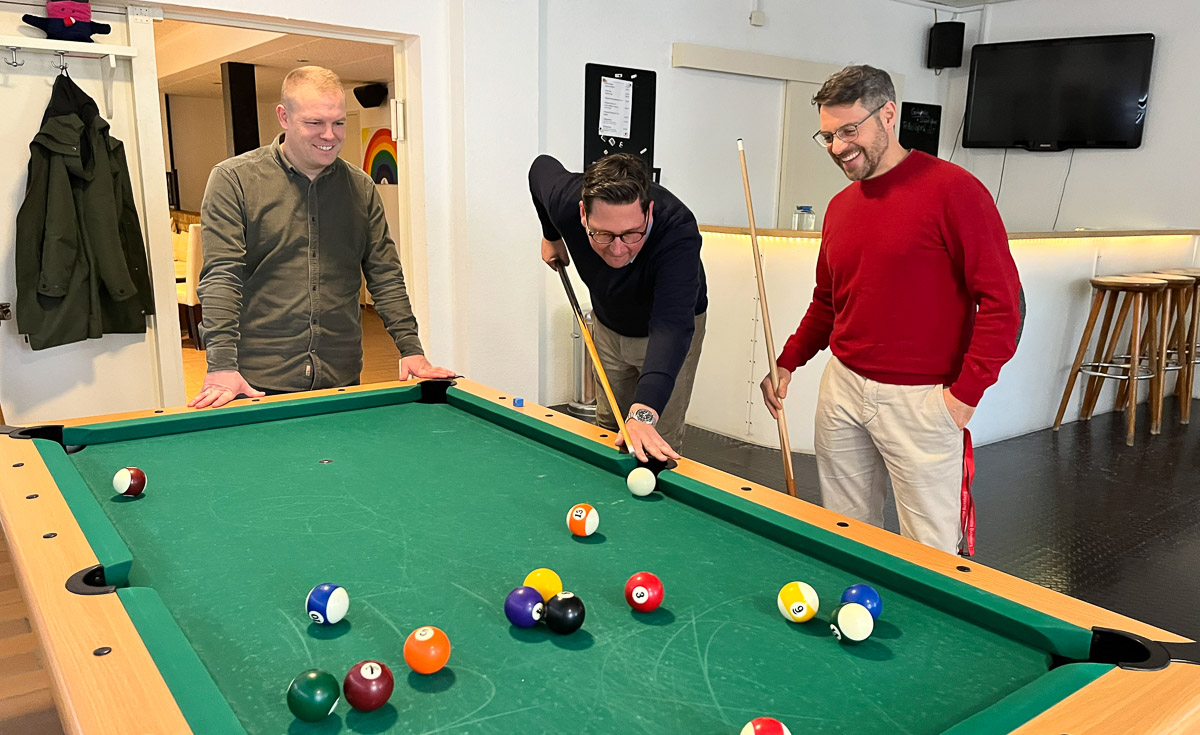 Seit Ende August ist Valentin Pantke nun in der Jetenburger Straße am Start und arbeitet zusammen mit den weiteren zwei Mitarbeitern mit und für die Jugendlichen. Im Schnitt kommen pro Tag 17 Jugendliche in die Stätte – mal etwas mehr, mal etwas weniger. Während sich Pantke vorstellt, kommen drei Jungen in den Aufenthaltsraum – sie haben noch Zeit, bis der Bus kommt und nutzen diese, um gemeinsam eine Runde Billard zu spielen. „Die JFS hat zwei Standbeine – den offenen Bereich, in dem die Jugendlichen kommen können, wann sie möchten, und die Vereinsaktivitäten hier im Haus. Hier möchten wir gerne noch mehr Kooperationen schaffen und die Kinder anregen, noch mehr mitzumachen“, erläutert Pantke. Unter anderem mit dem Kickbox-Verein funktioniere die Zusammenarbeit super – die dort aktiven Kinder kämen oft schon früher in die JFS, um noch dort Zeit zu verbringen. „Es ist uns wichtig, auch den Vereinen hier gute Möglichkeiten zu bieten und Synergien zu schaffen“.