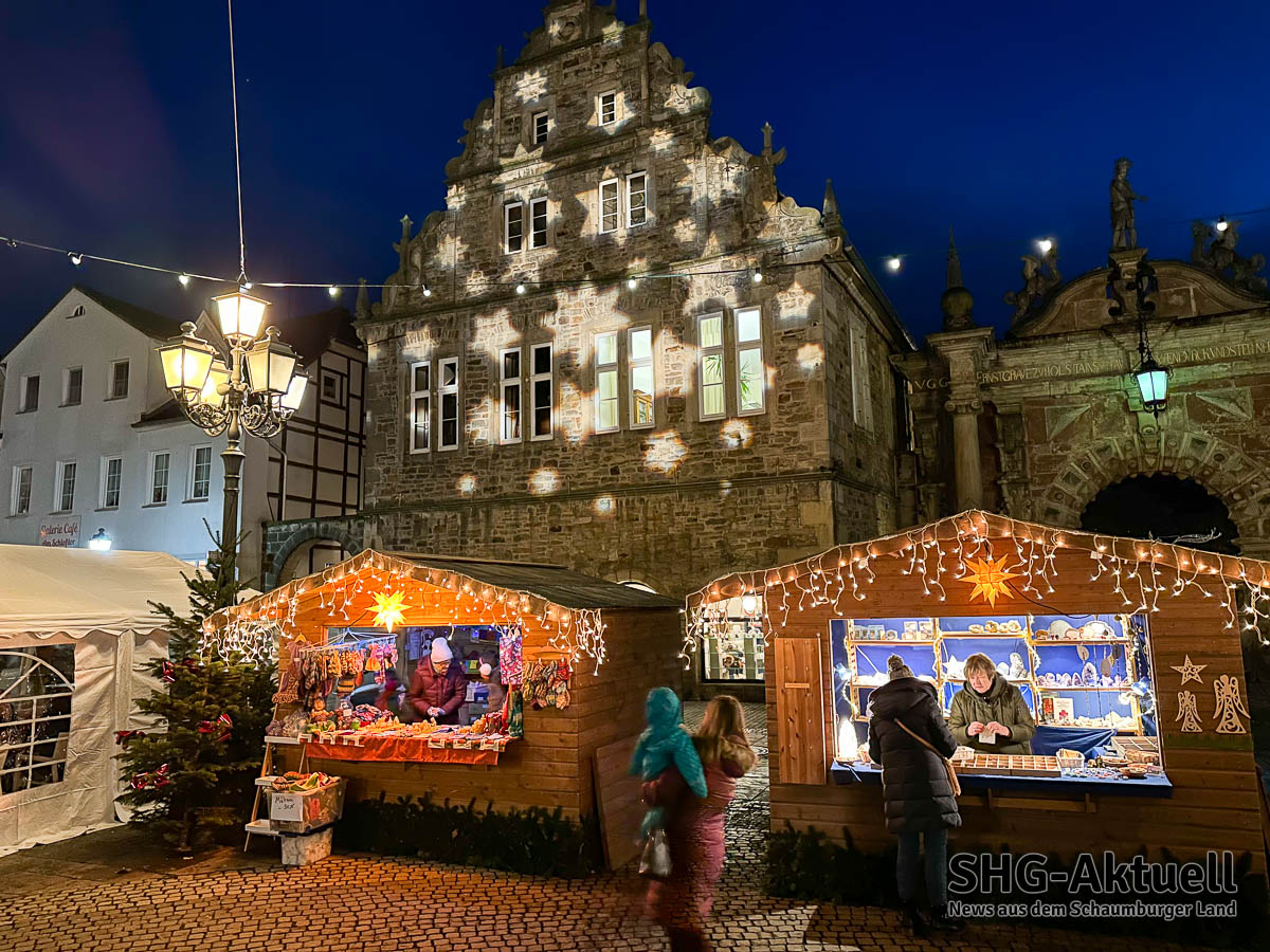 Der erste Tag bietet eine Tanzaufführung von Marks Tanzschule um 16:00 Uhr. Die Offizielle Eröffnung findet um 17:00 Uhr mit Bürgermeister Axel Wohlgemuth statt, begleitet von einem Walkact „Art Tremondo“. Musikalische Beiträge kommen vom Schaumburger Jugendchor um 17:30 Uhr und dem Kammerchor Cantemus Bückeburg um 18:00 Uhr. Für Kinder kommt der Weihnachtsengel mit Überraschungen. Der Markt beginnt täglich ab 12:00 Uhr.