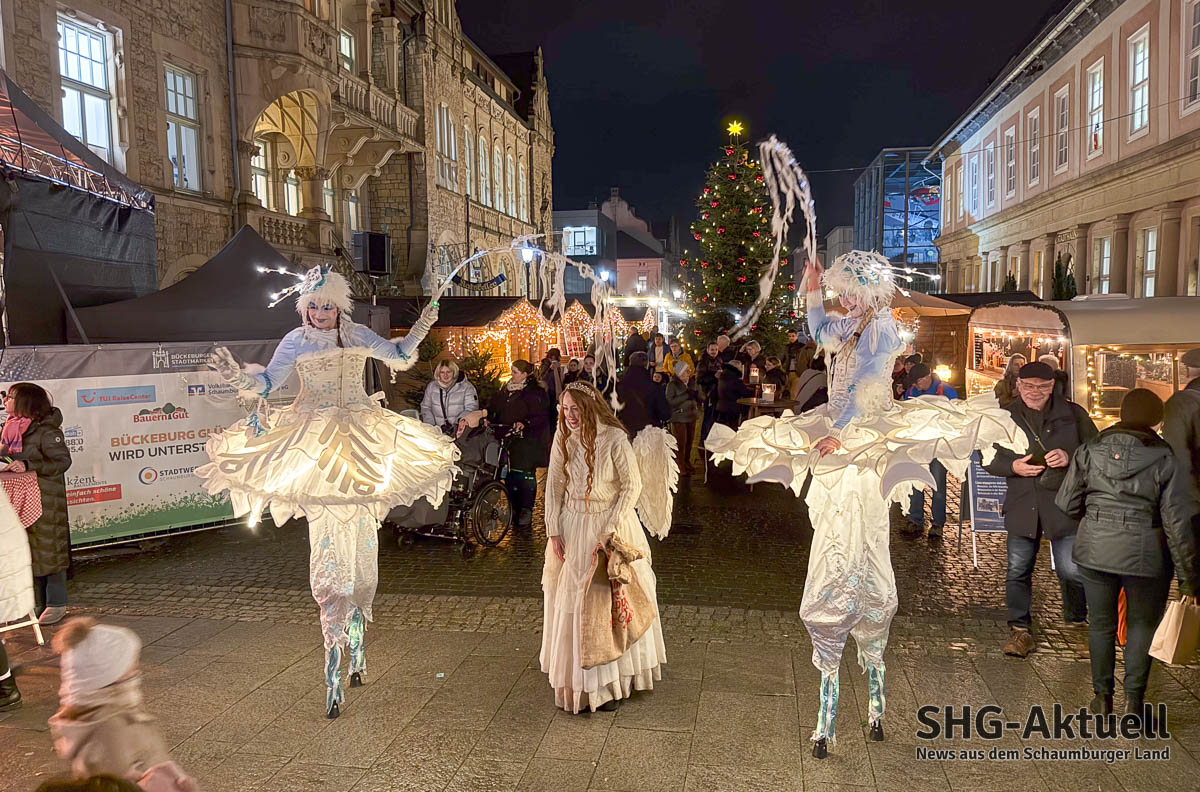 Das Bühnenprogramm umfasst Auftritte verschiedener Bückeburger Chöre sowie fröhliche Weihnachtsmusik verschiedener Bands und Formationen. Der Weihnachtsengel kommt und verteilt kleine Geschenke. Außerdem lädt der Nachtwächter auf eine Tour durch die unbekannten Gassen und Winkel der Stadt ein.