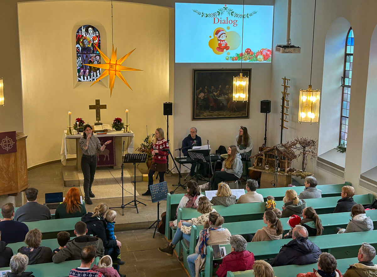 Besucherin der ersten Stunde war die Jugenddiakonin der Landeskirche Schaumburg-Lippe, Amelie-Katherine Schmidt, die in diesem Jahr mit ihrem Team einen unkonventionellen Jugendgottesdienst in der übervollen Rogate Kirche auf die Beine gestellt hat. Unter anderem mit der neuen Diakonin Denise Watermann und dem Popmusiker und Musikpädagogen Ulrich Meyer und dem „Wendthäger Kinderchor“ bestehend aus den 13 Kindern der Kita „Kinderwelt“ und drei Akteurinnen des „Rogate Singkreises“ erlebten die Gottesdienstbesucher in gut 60 Minuten nicht nur eine unerwartet lockere Liturgie sondern ein musikalisches Highlight nach dem Anderen. Textsicher bei dem unbekannten und teilweise in englischer Sprache dargebotenen Liedgut musste man nicht sein. Die Gottesdienstabfolge und die Liedertexte konnten mittels Overhead-Technik bequem an der Kirchenwand abgelesen werden. Nur die Kindergartenkinder, die noch nicht oder kaum lesen können, hatten ihre drei Liedtexte auswendig gelernt.