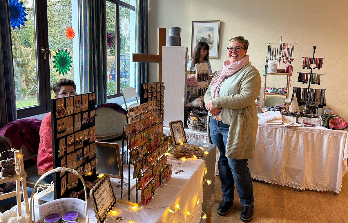 Chantal Angelis und Mona Patzak hatten wieder dafür gesorgt, dass die zehn Verkaufsstände im Gemeindesaal mit kunstvoll und selbst von den Standbetreibern gefertigten Artikeln wie Kerzen, Schmuckstücken und Kleidungsstücken vertreten waren. Die Stände luden zum Anschauen, Stöbern und natürlich auch zum Kaufen, zum Beispiel als Geschenke zu Weihnachten, ein.