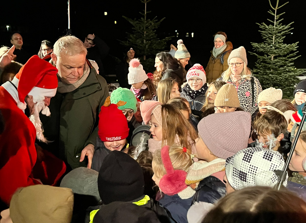 Ein programmatisches Highlight – für klein und groß – war die musikalische Einlage der Schüler der Grundschule Petzer Feld, die mit zwei Liedern die Menge begeisterten. Trotz einige schiefer Töne sangen die Kleinen mit Leidenschaft und Inbrunst – so sehr, dass zahlreiche Besucher eine Zugabe forderten. Doch für die gab es keine Zeit, denn eigentlich hatte sich der Nikolaus angekündigt. Dieser ließ jedoch zunächst, trotz lautstarker Rufe der Kinder, auf sich warten. Mit etwas Verspätung sorgten dann der Mann im roten Mantel zusammen mit Martin Brandt bei den Kindern für die lang ersehnte Bescherung.