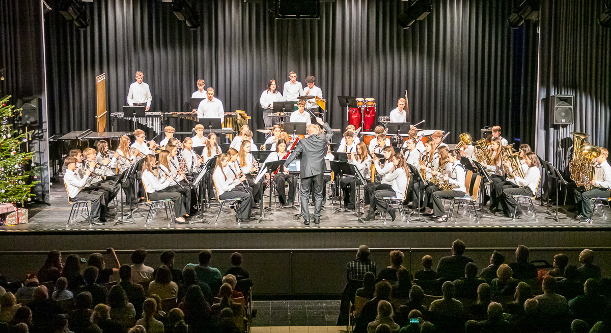 Das Vororchester der Ratsband setzte mit „Nessaja“ und „Feliz Navidad“ weitere emotionale Höhepunkte, bevor die Ratsband Stadthagen unter der Gesamtleitung von Andreas Meyer den musikalischen Schlusspunkt setzte. Mit Piazzollas „Oblivion“ – solistisch getragen von den Oboen Mira-Ann Schneider und Finja Elgert – sowie dem schwungvollen „Snowball Fun“ verabschiedete sich das Ensemble unter langanhaltendem Applaus mit der „Petersburger Schlittenfahrt“ vom Publikum.