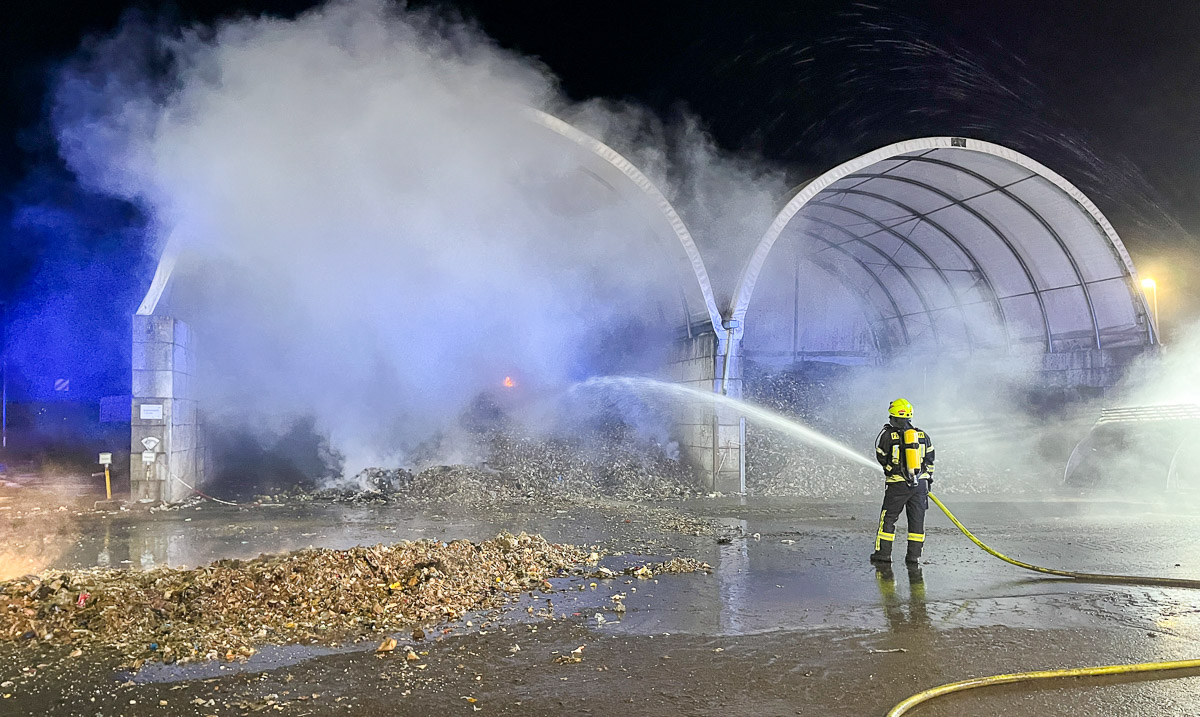 Auf dem Gelände brannte Müll, welcher in ein offenem und überdachten Silo gelagert wurde.