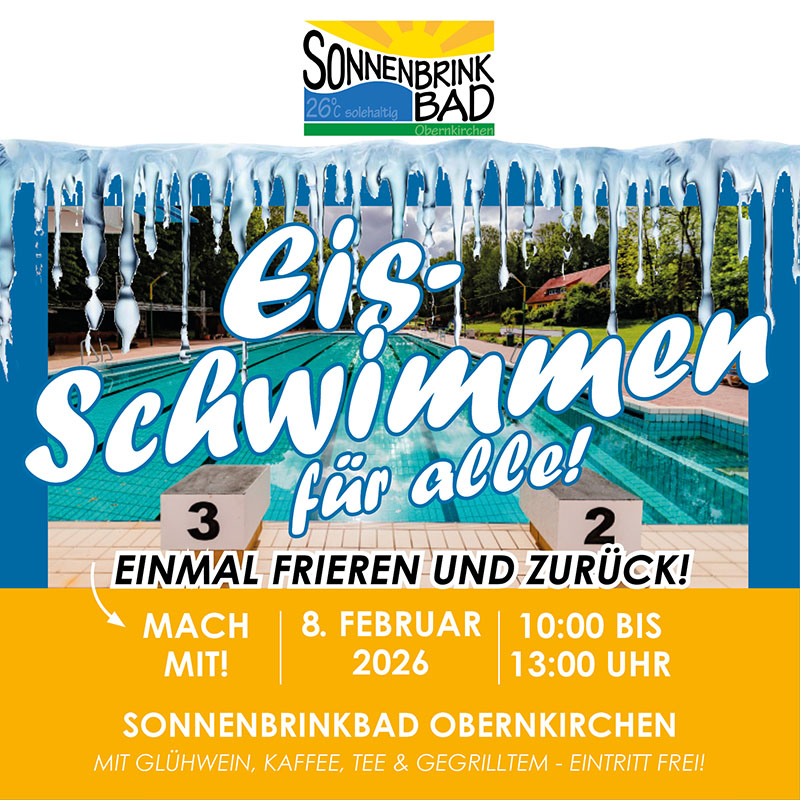 (Obernkirchen) Einmal frieren und zurück – unter diesem Motto wird am Sonntag, den 8. Februar 2026 von 10:00 bis 13:00 Uhr zum 2. Eisschwimmen ins Sonnenbrinkbad eingeladen.