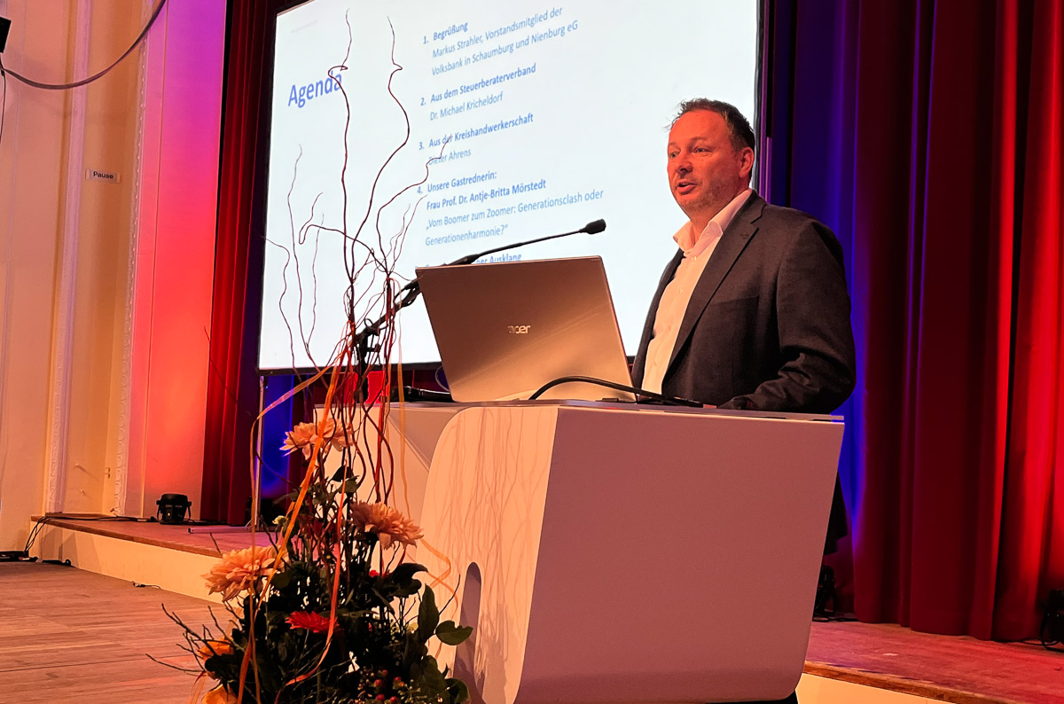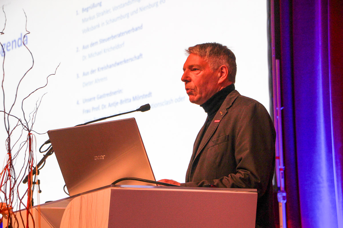 Markus Strahler, Vorstandsmitglied der Volksbank, begrüßte die Anwesenden gemeinsam mit Dr. Michael Kricheldorf vom Steuerberater-Ortsverband und Kreishandwerksmeister Dieter Ahrens.